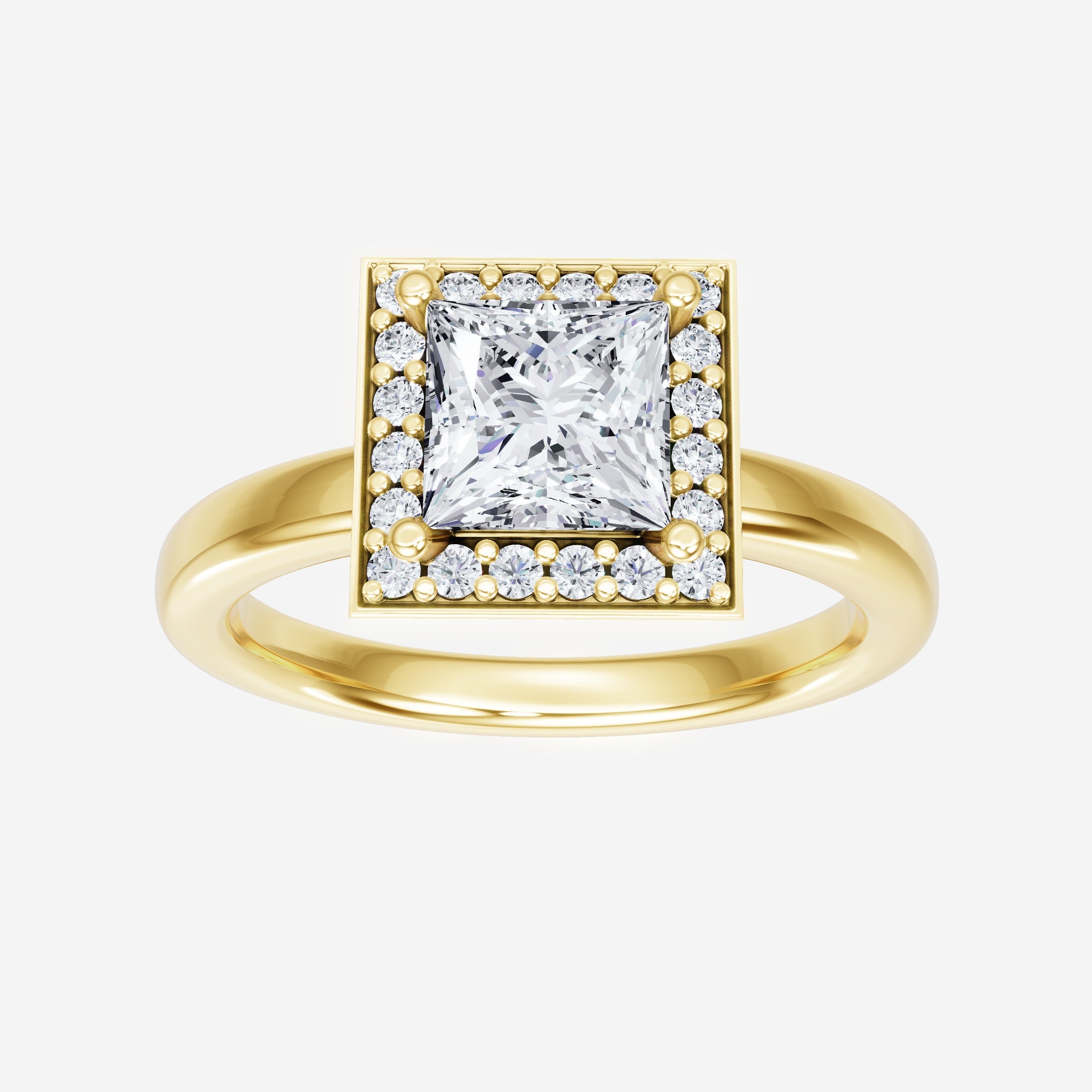 You’ve designed a ring that reflects lasting elegance and grace! Crafted from 14k Yellow Gold, this exquisite Princess lab-grown diamond is the centerpiece of this unique design. This Basic Plain Shank with a Pave Halo head showcases the brilliance of the Princess diamond, creating a timeless look. Ideal for those who seek both beauty and meaning, this ring will stand as a testament to cherished memories.