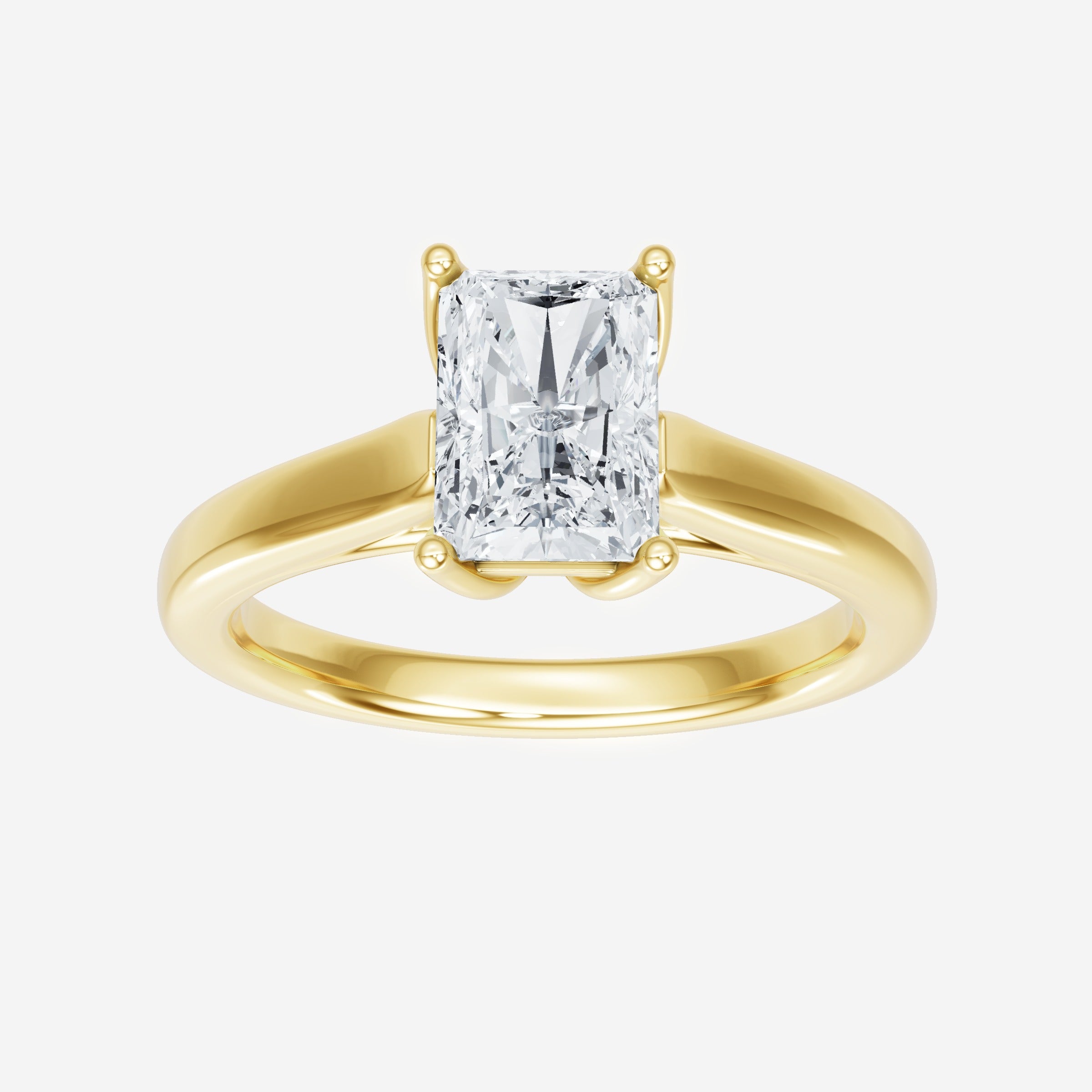¡Ha diseñado un anillo que refleja elegancia y gracia duraderas! Este exquisito diamante Radiant cultivado en laboratorio, elaborado en oro amarillo de 14 quilates, es la pieza central de este diseño único. Este anillo de cuerpo liso estilo catedral con cabeza de flor de 4 puntas muestra el brillo del diamante Radiant y crea un estilo atemporal. Este anillo se convertirá en un preciado recordatorio de los momentos más preciados de la vida.