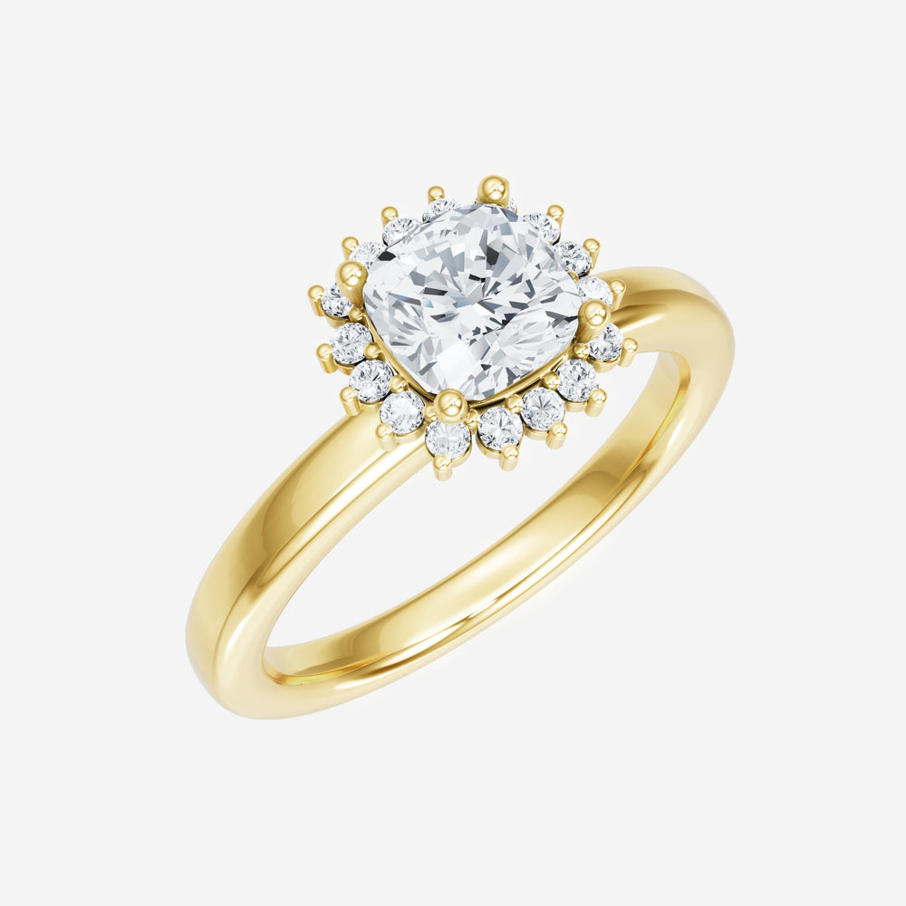 You’ve designed a ring that reflects lasting elegance and grace! Crafted from 14k Yellow Gold, this exquisite Cushion lab-grown diamond is the centerpiece of this unique design. This Basic Plain Shank with a Diana Halo head showcases the brilliance of the Cushion diamond, creating a timeless look. This ring will become a cherished reminder of life's most treasured moments.