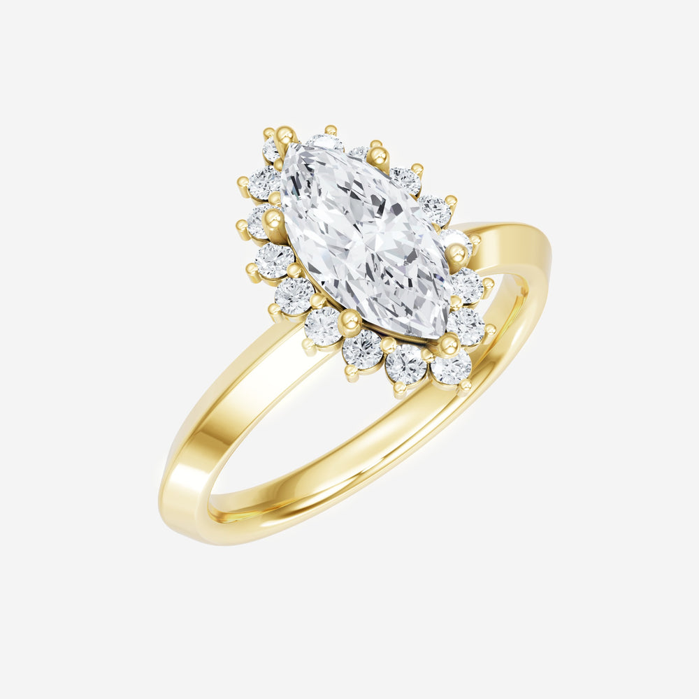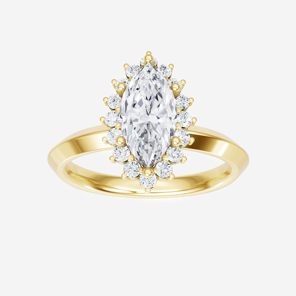 You’ve designed a ring that reflects lasting elegance and grace! Crafted from 14K Yellow Gold, this exquisite Marquise lab-grown diamond is the centerpiece of this unique design. This Knife Edge Shank with a Diana Halo head showcases the brilliance of the Marquise diamond, creating a timeless look. With this ring, celebrate every moment of joy, success, and love.