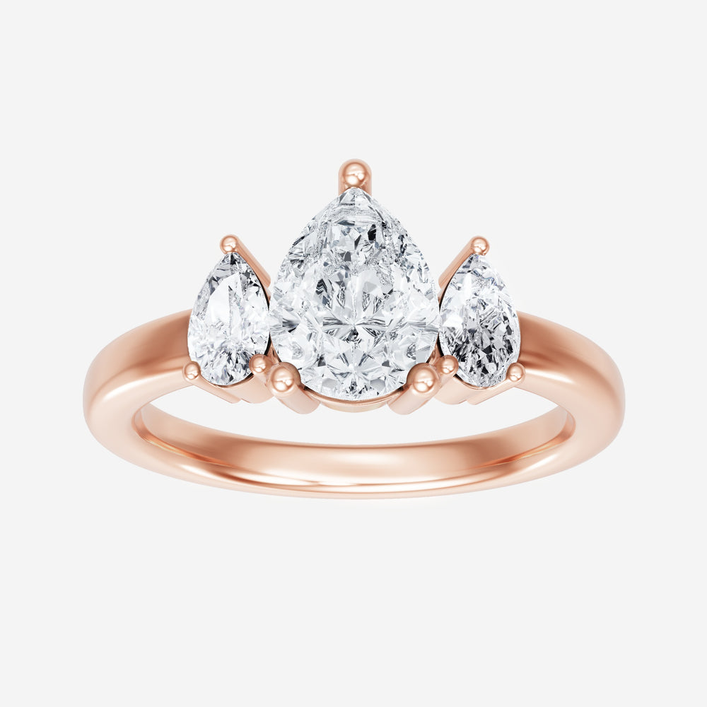 You’ve designed a ring that reflects lasting elegance and grace! Crafted from 14k Rose Gold, this exquisite Pear lab-grown diamond is the centerpiece of this unique design. The simplicity of the Basic Plain Shank beautifully contrasts with the intricate 3 Stone Head, allowing the Pear diamond to shine with unmatched brilliance. It's a design that brings sophistication and elegance, perfect for anyone who adores timeless beauty. This ring will become a cherished reminder of life's most treasured moments.