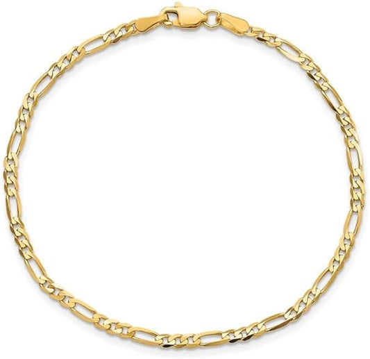 14k Yellow Gold Figaro Bracelet (7inch- 7.5Inch)