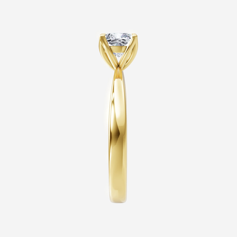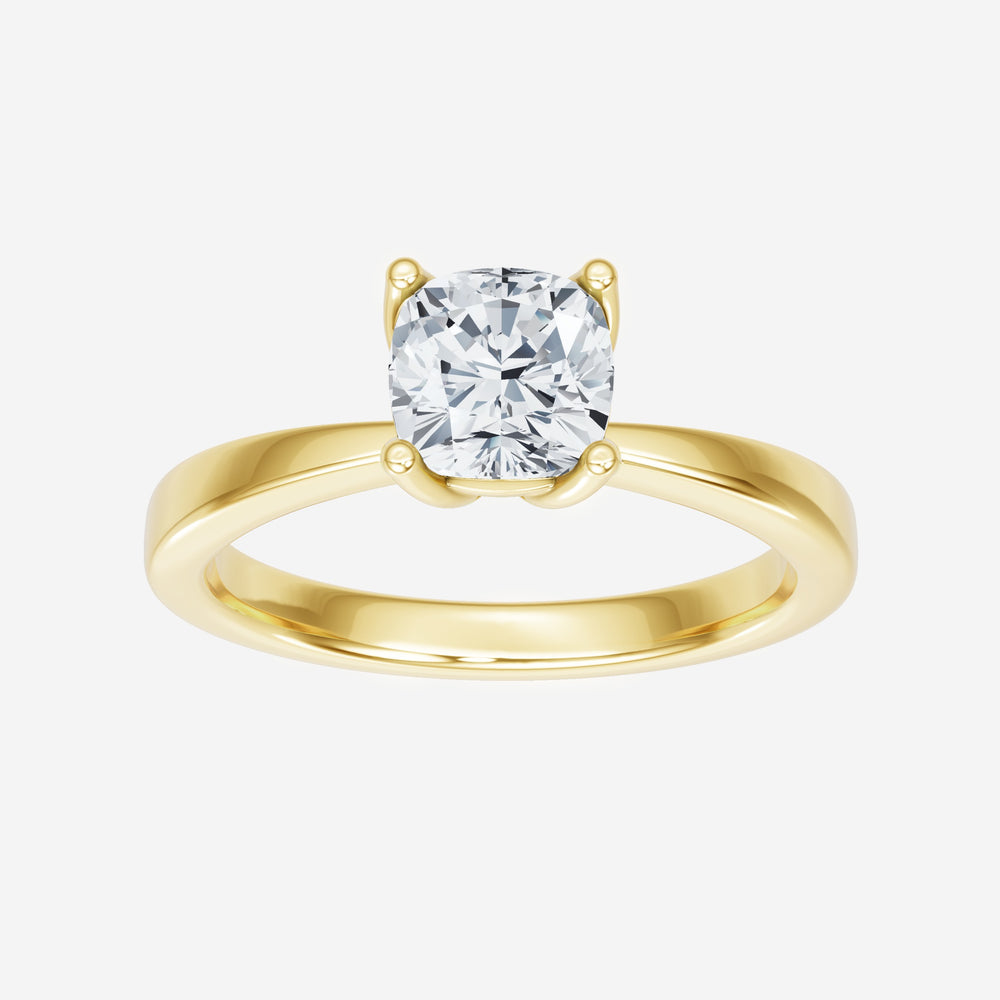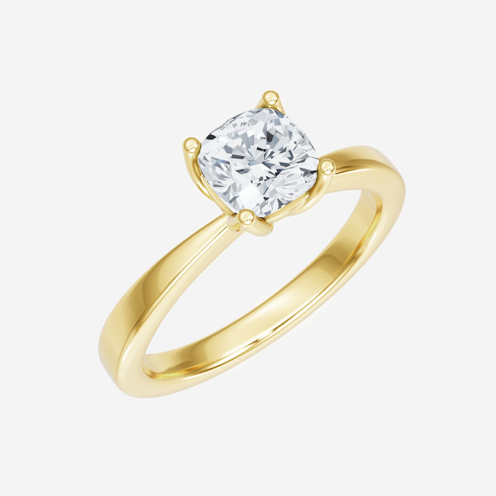 You’ve designed a ring that reflects lasting elegance and grace! Crafted from 14K Yellow Gold, this exquisite Cushion lab-grown diamond is the centerpiece of this unique design. This Bow Shank (Reverse Tapered) with a 4 Prong Flower Head head showcases the brilliance of the Cushion diamond, creating a timeless look. This elegant piece is the perfect symbol of love, strength, and timeless beauty.