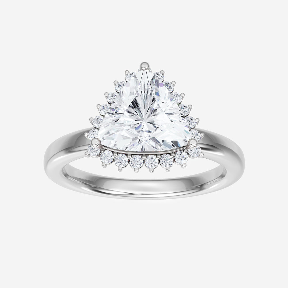 ¡Ha diseñado un anillo que refleja elegancia y gracia duraderas! Este exquisito diamante Trillion creado en laboratorio, elaborado en oro blanco de 14 quilates, es la pieza central de este diseño único. Este anillo sencillo básico con cabeza de halo Diana de 3 puntas muestra el brillo del diamante Trillion y crea un estilo atemporal. Es una pieza de elegancia y belleza, perfecta para marcar las ocasiones más hermosas de la vida.