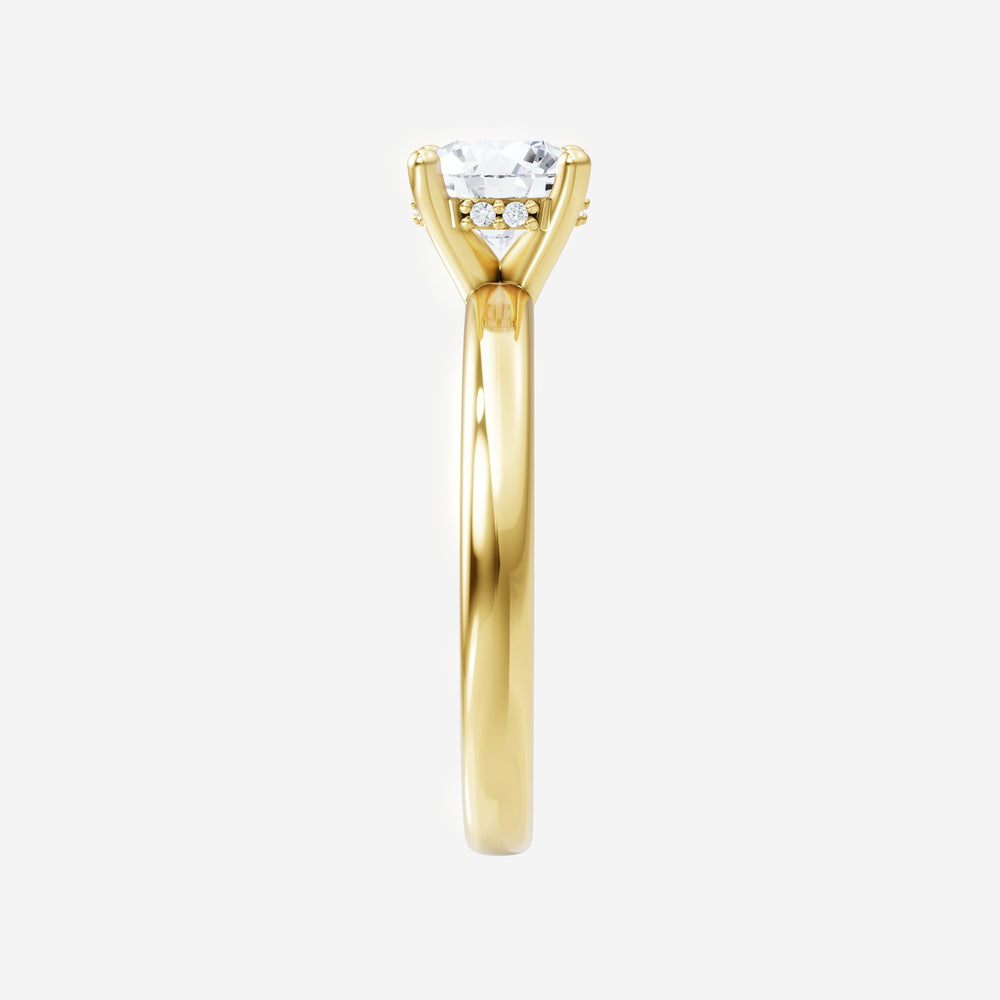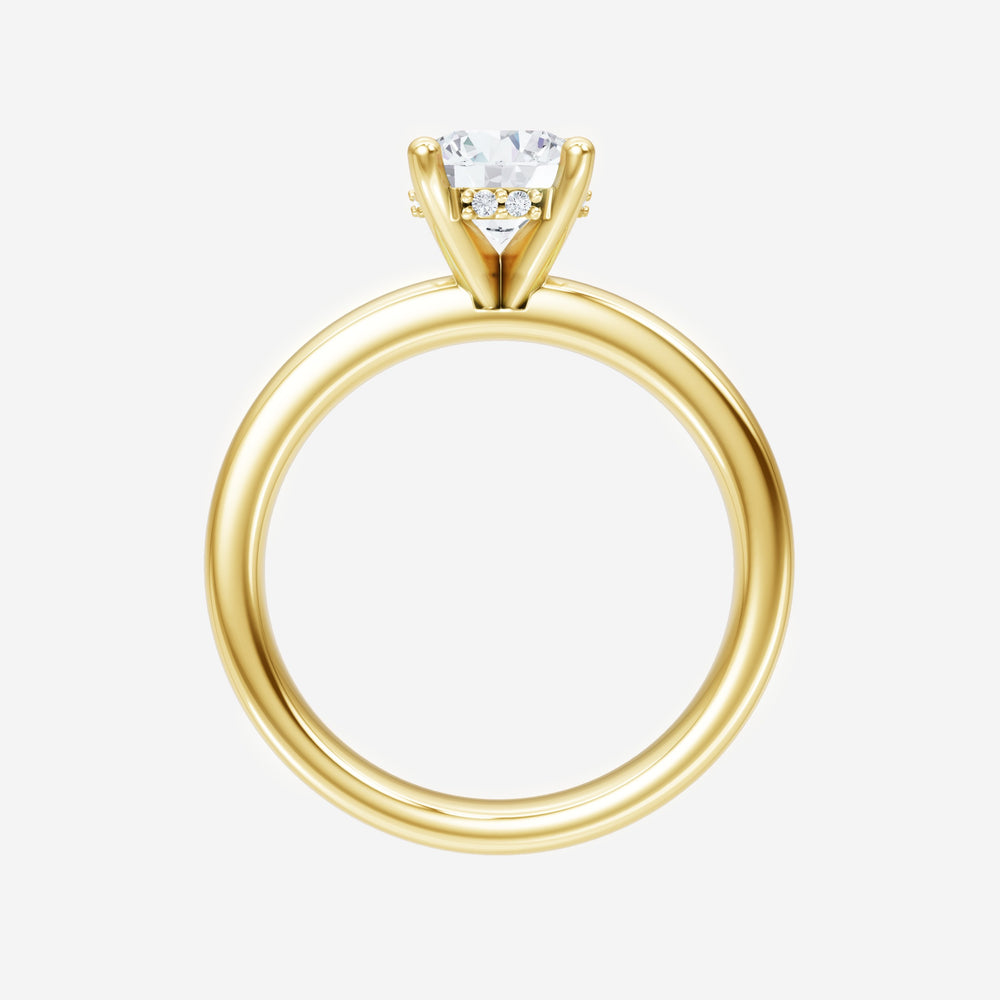 ¡Ha diseñado un anillo que refleja elegancia y gracia duraderas! Este exquisito diamante redondo cultivado en laboratorio, elaborado en oro amarillo de 14 quilates, es la pieza central de este diseño único. Este anillo sencillo básico con cabeza de halo oculto muestra el brillo del diamante redondo y crea un estilo atemporal. Esta elegante pieza es el símbolo perfecto del amor, la fuerza y ​​la belleza atemporal.