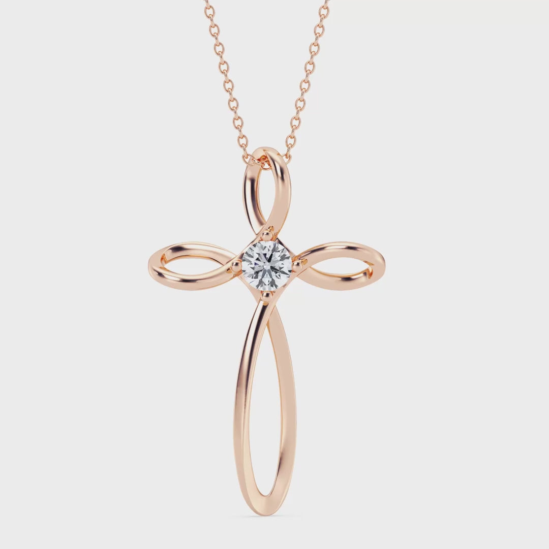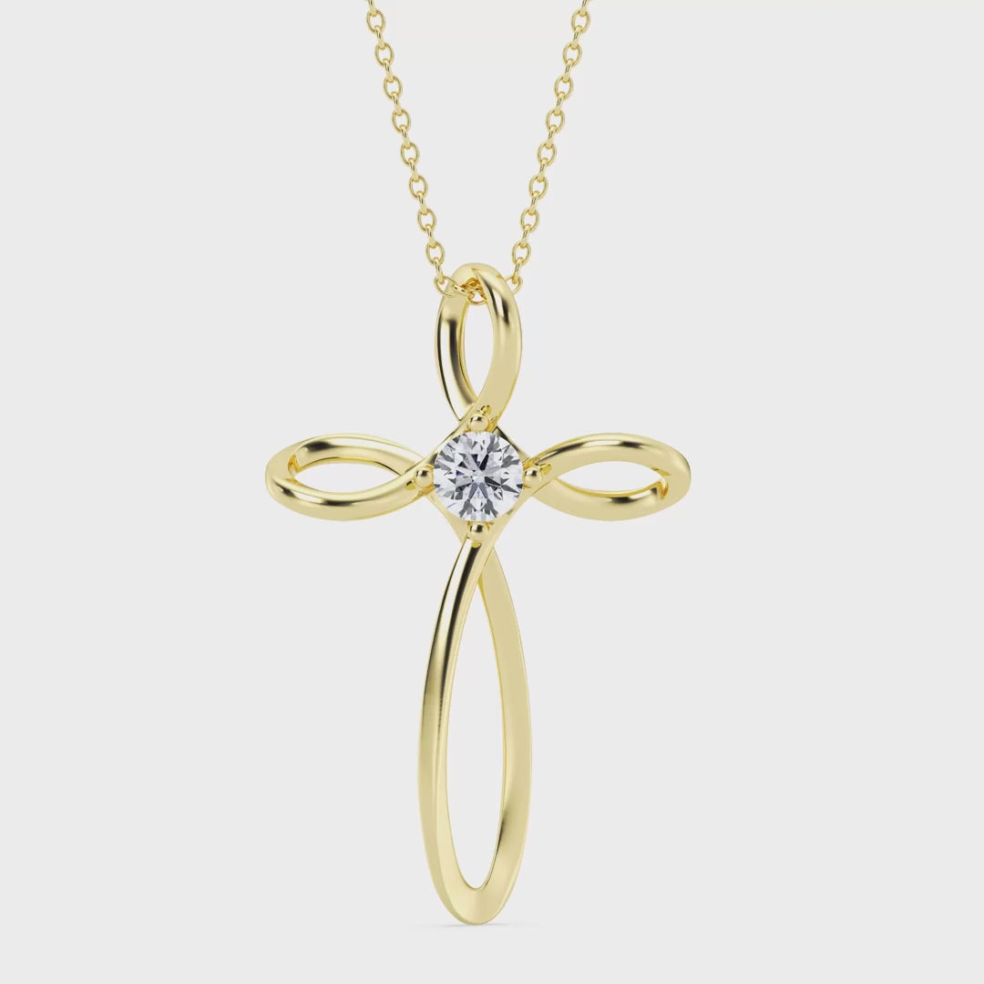 Este colgante en forma de cruz, elaborado con precisión, cuenta con un único diamante redondo cultivado en laboratorio de 4 mm de diámetro. Con un peso total en quilates de 0,25 quilates, este diamante brilla delicadamente en el centro de la cruz y simboliza la belleza duradera de la fe.