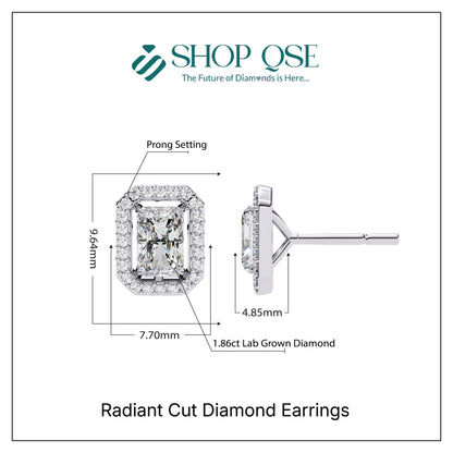 Pendientes de diamantes de talla radiante cultivados en laboratorio de 1,86 ct