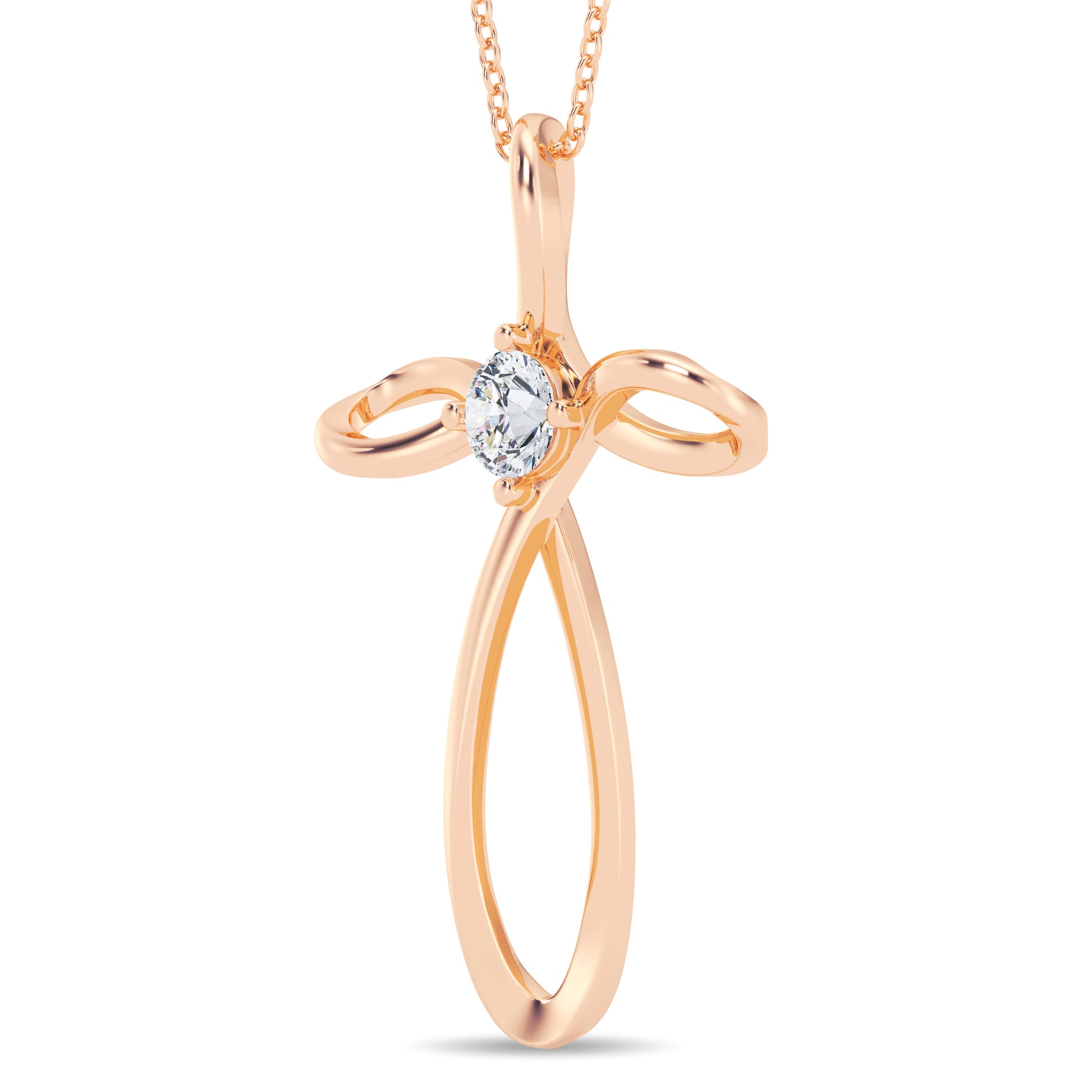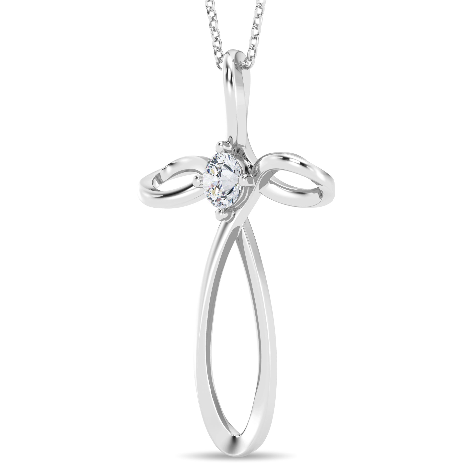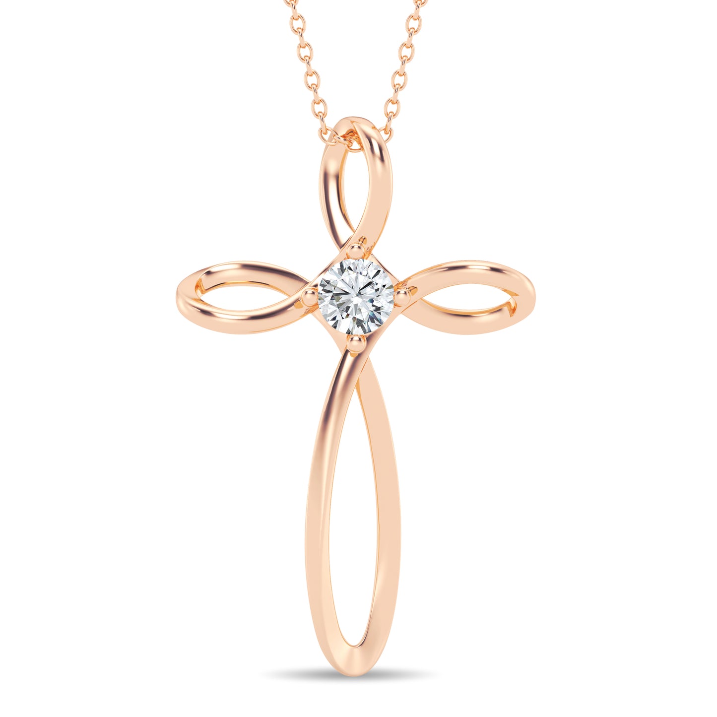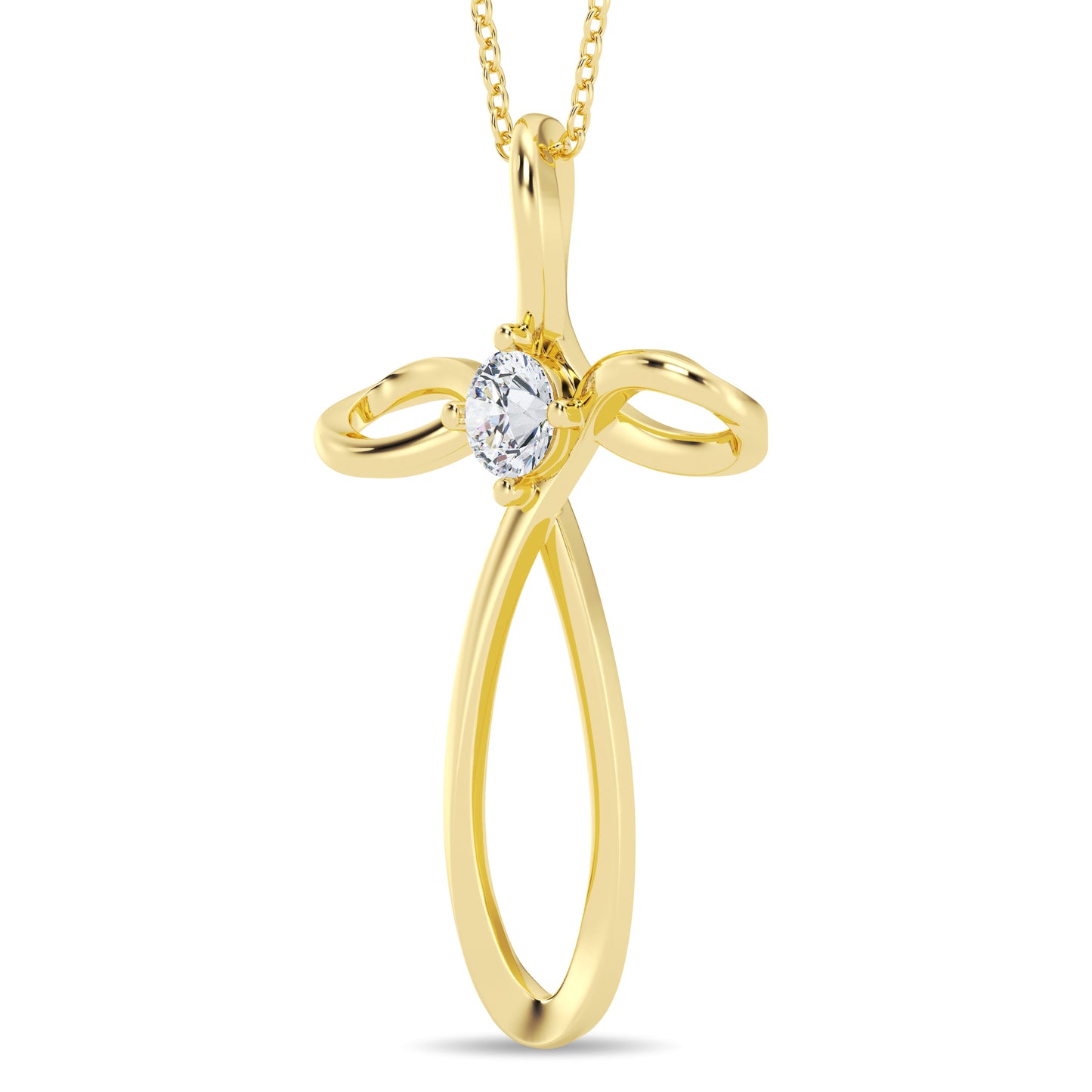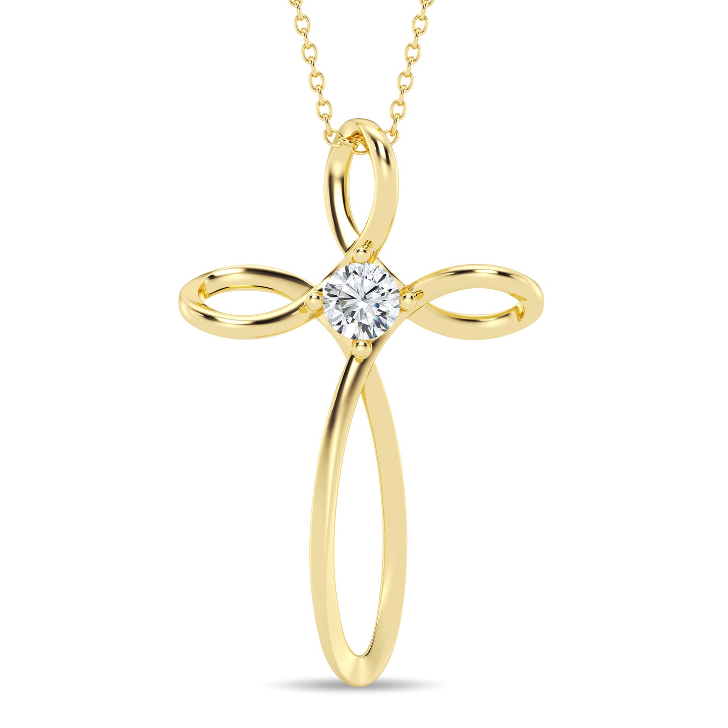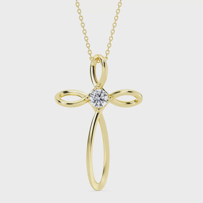 Crafted with precision, this cross pendant features a single round lab-grown diamond, measuring 4mm in diameter. With a total carat weight of 0.25 carats, this diamond sparkles delicately at the center of the cross, symbolizing the enduring beauty of faith.
