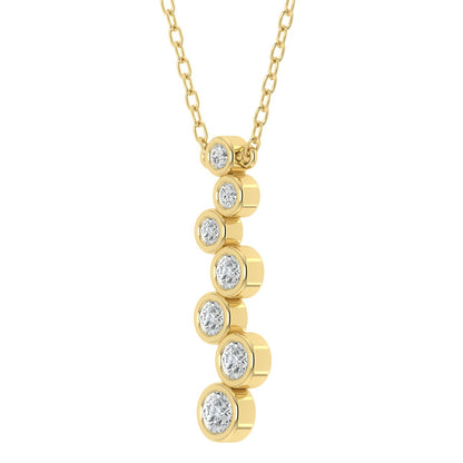 Add a touch of sparkling sophistication to your jewelry collection with this exquisite lab-grown diamond Long Solitaire pendant with chain. Designed in your choice of 14K yellow, white, this pendant features a captivating cluster of round diamonds that catch the light beautifully from every angle.
