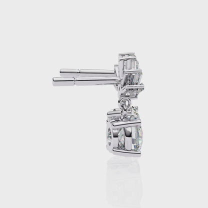 Inspired by nature, the delicate floral motif of these earrings makes them perfect for weddings, parties, or daily wear. With a mix of round and baguette-cut diamonds, these earrings bring versatility and elegance to any outfit.