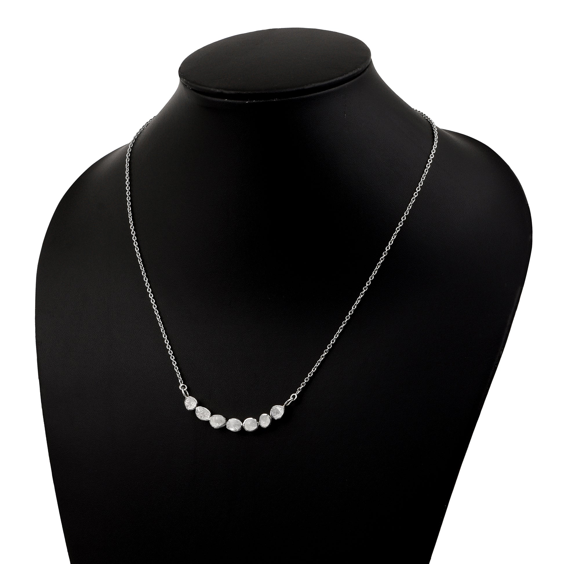 Unveiling our 1.00CTW Uncut Natural Diamond Necklace, a masterpiece that captures the timeless elegance and enduring charm of uncut Polki diamonds. This exquisite necklace is meticulously crafted in 925 Sterling Silver, radiating an aura of refined beauty.