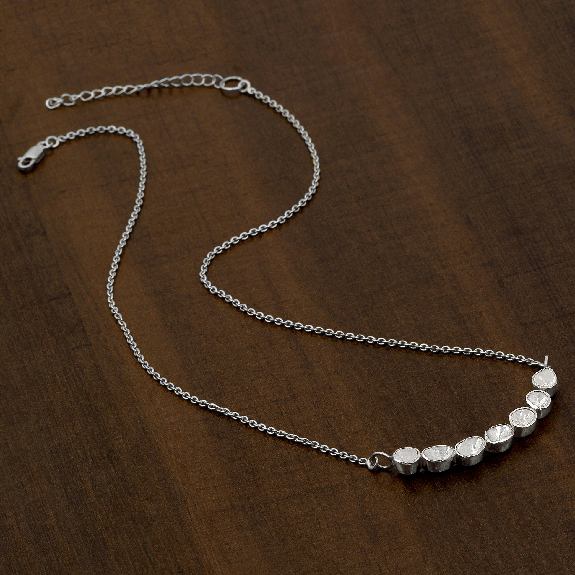 Material: With precision and care, this necklace is fashioned from high-quality 925 Sterling Silver, adding a touch of sophistication to the natural beauty of Polki diamonds.