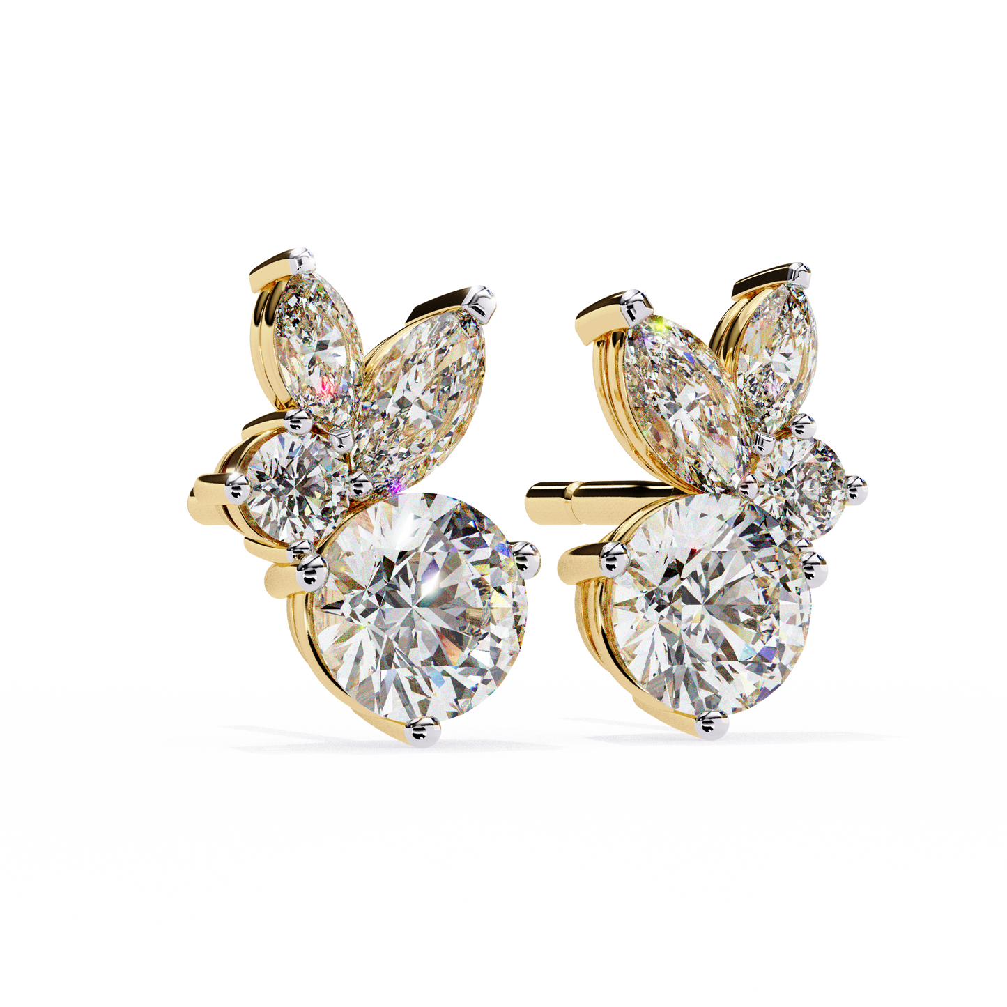 Featuring an intricate combination of marquise and round diamonds, these earrings boast a modern and elegant design. Ideal for elevating everyday looks or adding a touch of glamour to special occasions, these earrings are a must-have addition to any jewelry collection.