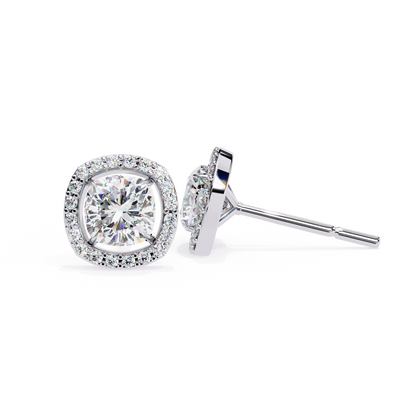 Enhance your jewelry collection with these exquisite lab-grown cushion diamond earrings, thoughtfully crafted in your choice of 14K or 18K yellow, white, or rose gold. Featuring a captivating cushion-cut diamond surrounded by a halo of shimmering accent diamonds, these earrings exude timeless elegance and sophistication.
