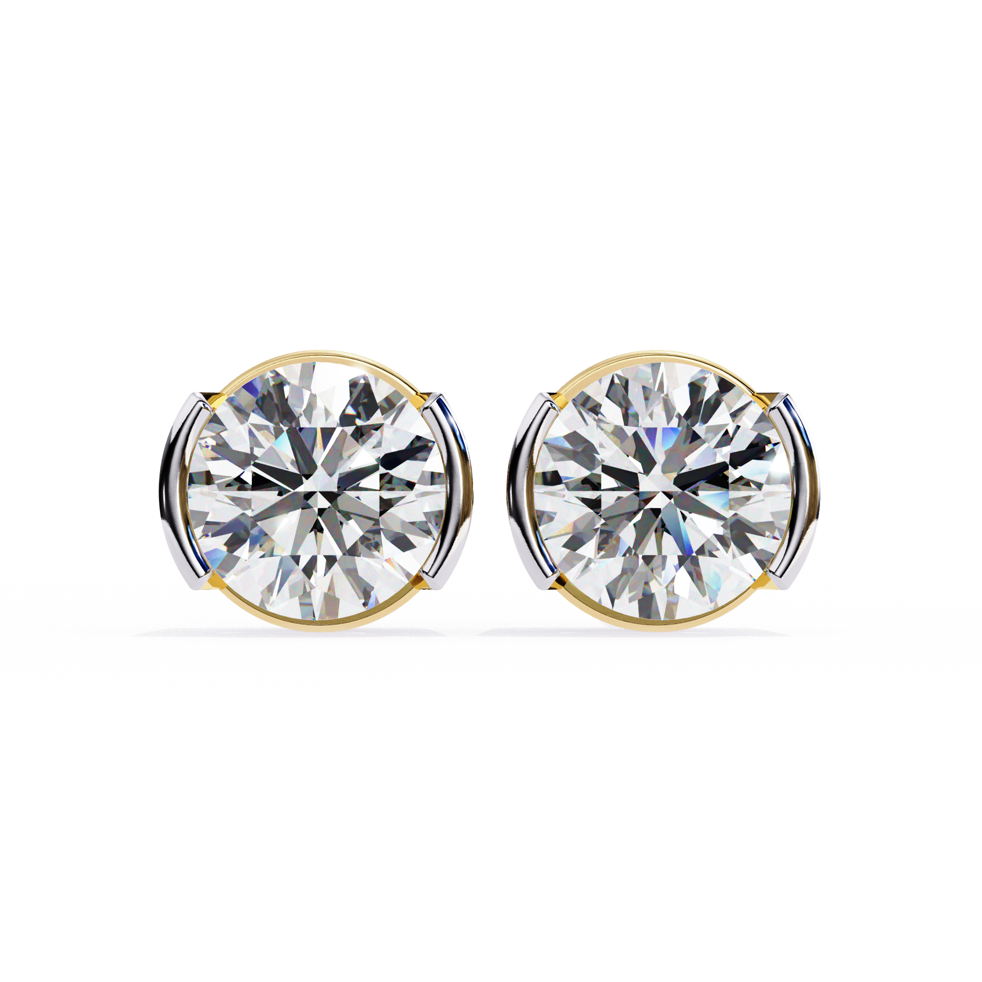 Experience modern elegance with these exquisite lab-grown diamond half bezel set earrings. Expertly crafted in your choice of 14K or 18K yellow, white, or rose gold, these earrings feature stunning round diamonds securely nestled in a sleek half bezel setting, creating a sophisticated and contemporary look.