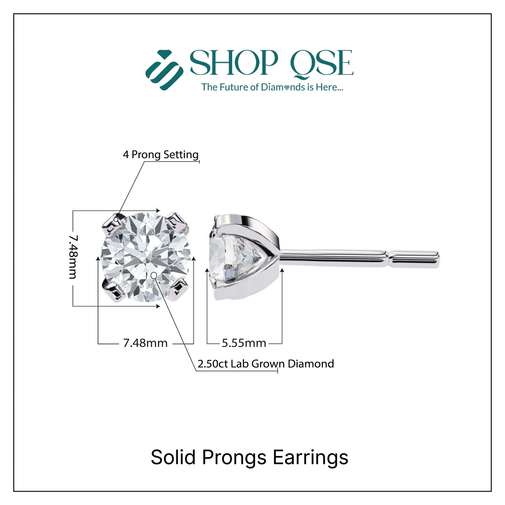 IGI 2.50ct Lab-Grown Diamond Solid Prongs Earrings
