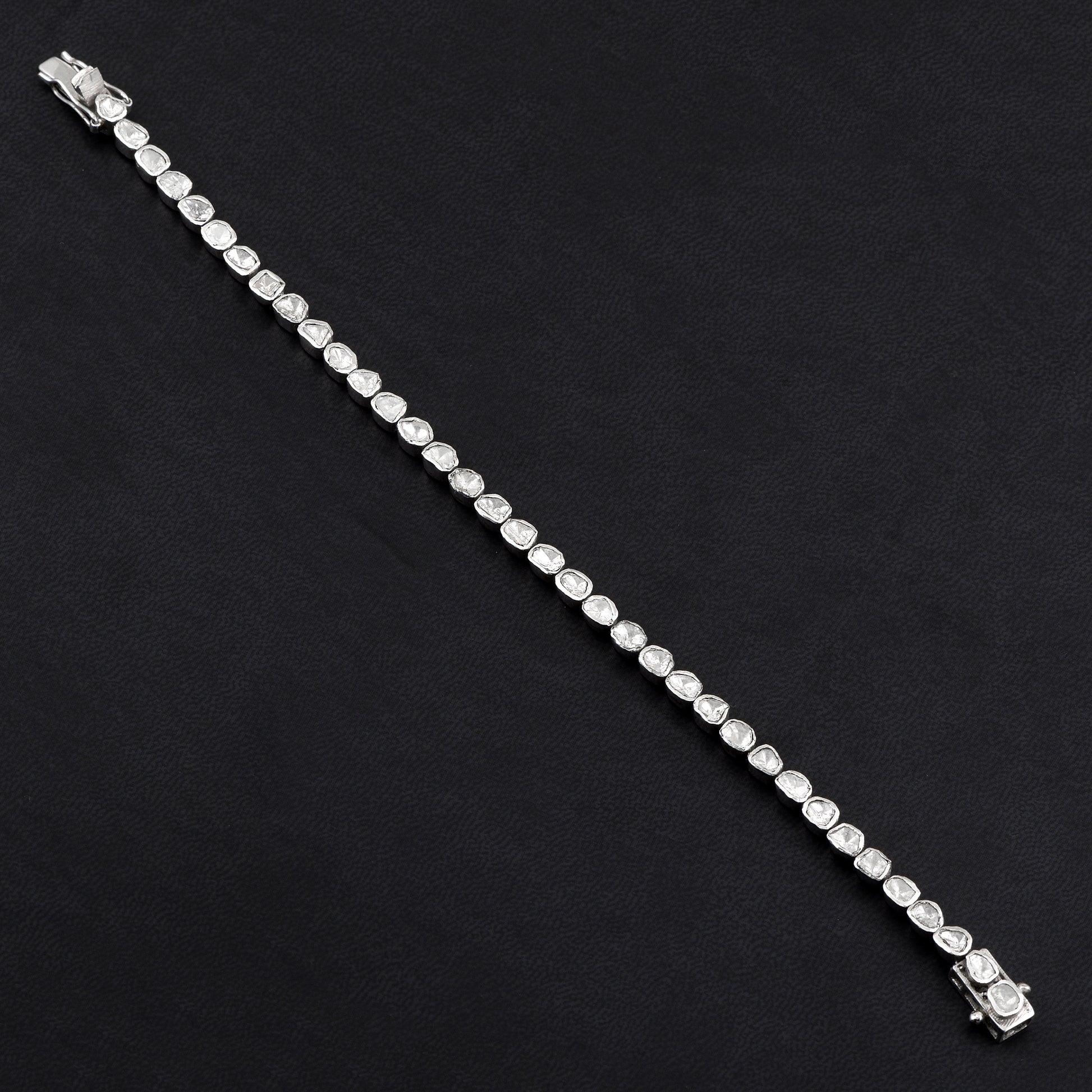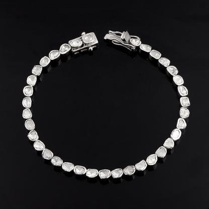 Design: The design of this tennis bracelet resonates with radiant elegance. The uncut Polki diamonds are set in a continuous, dazzling display, held securely within the Sterling Silver setting. This union of pristine diamonds and expert craftsmanship results in a bracelet that is both exquisite and distinctive.