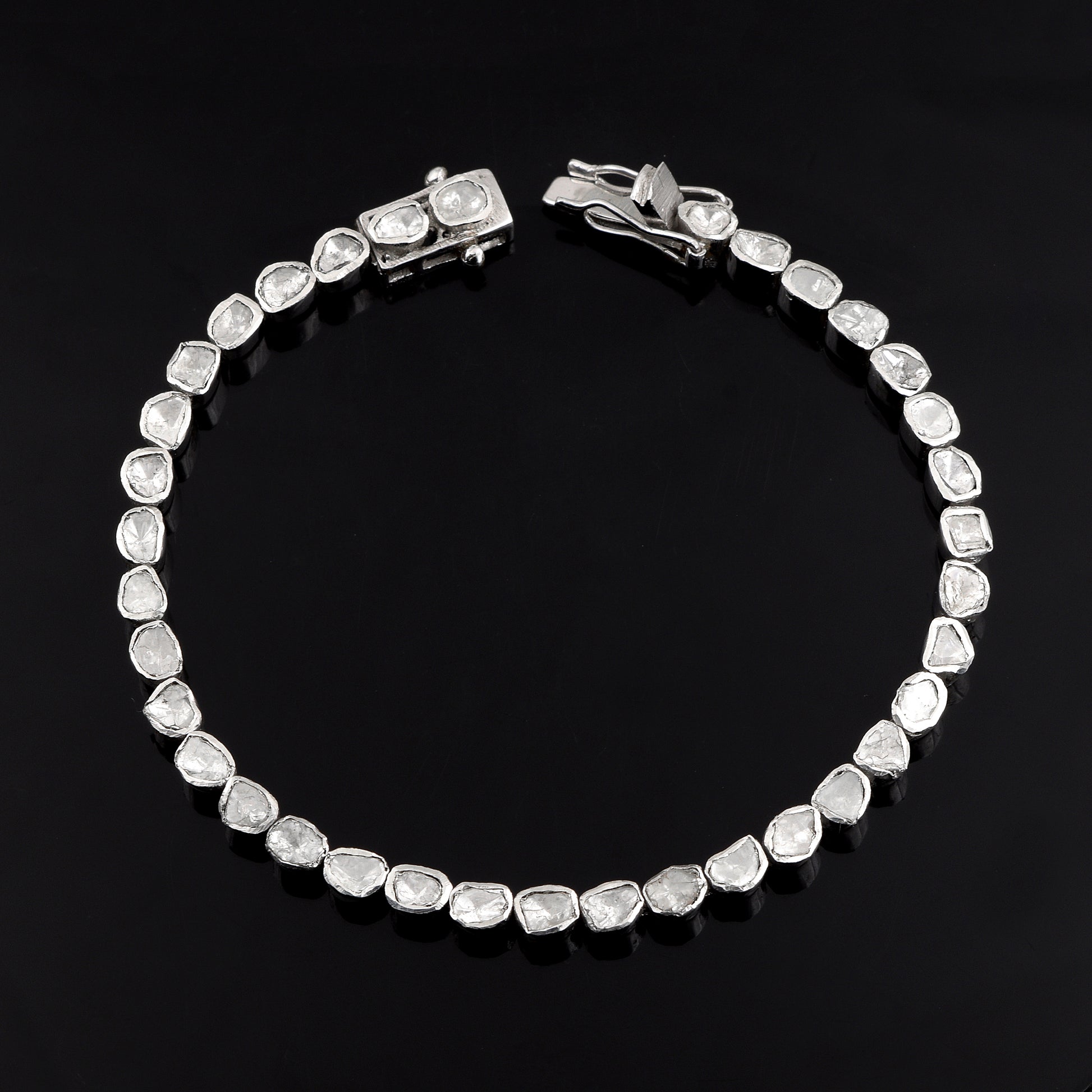 Introducing our 2.5CTW Uncut Natural Polki Diamond Tennis Bracelet, a masterpiece that embodies the natural allure and timeless charm of uncut Polki diamonds. This exquisite bracelet is meticulously crafted in 925 Sterling Silver, radiating a sense of enduring elegance.