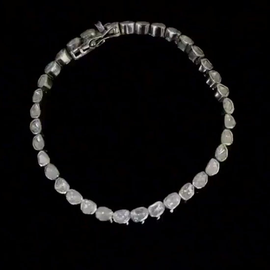 Experience the radiant elegance of uncut Polki diamonds with this exquisite tennis bracelet. Order now and adorn yourself with the enduring charm of nature's finest gems.