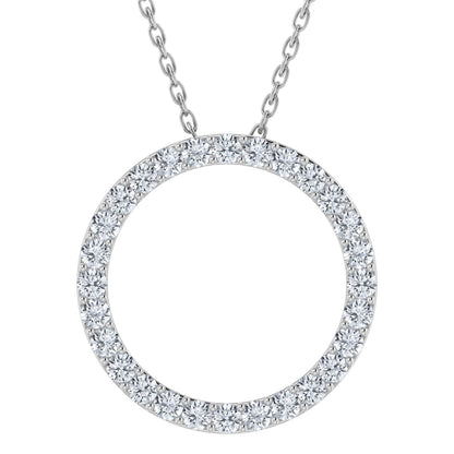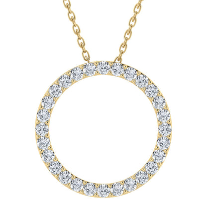 Add timeless elegance to your jewelry collection with this exquisite lab grown diamond circle pendant. Crafted in your choice of 14K white gold or 14K yellow gold, this sophisticated piece showcases 28 sparkling round-cut diamonds with a total carat weight of 0.25.