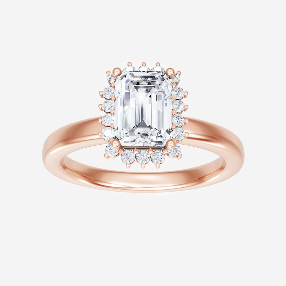 You’ve designed a ring that reflects lasting elegance and grace! Crafted from 14k Rose Gold, this exquisite Emerald lab-grown diamond is the centerpiece of this unique design. This Basic Plain Shank with a Diana Halo head showcases the brilliance of the Emerald diamond, creating a timeless look. This elegant piece is the perfect symbol of love, strength, and timeless beauty.