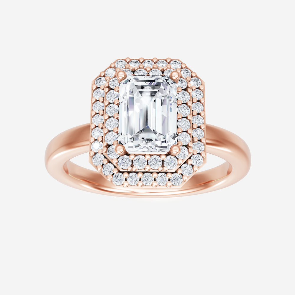 You’ve designed a ring that reflects lasting elegance and grace! Crafted from 14k Rose Gold, this exquisite Emerald lab-grown diamond is the centerpiece of this unique design. This Basic Plain Shank with a Double Halo head showcases the brilliance of the Emerald diamond, creating a timeless look. Ideal for those who seek both beauty and meaning, this ring will stand as a testament to cherished memories.