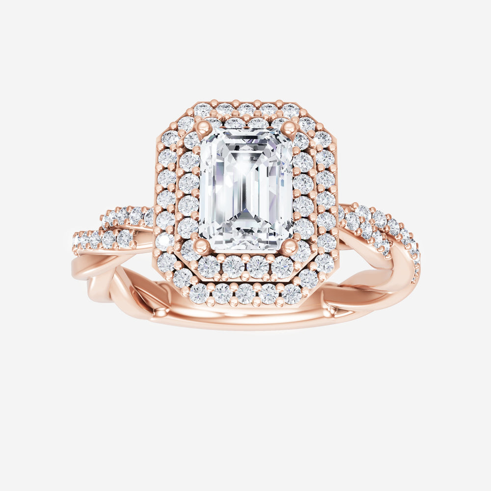You’ve designed a ring that reflects lasting elegance and grace! Crafted from 14k Rose Gold, this exquisite Emerald lab-grown diamond is the centerpiece of this unique design. This Rope Diamond Shank with a Double Halo head showcases the brilliance of the Emerald diamond, creating a timeless look. Whether as a gift or a personal treasure, this ring will forever symbolize the most meaningful moments in life.
