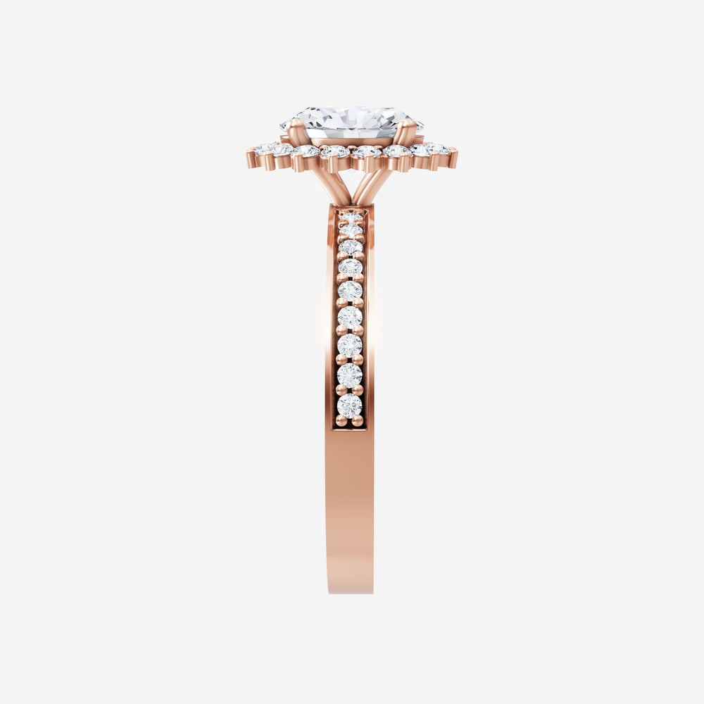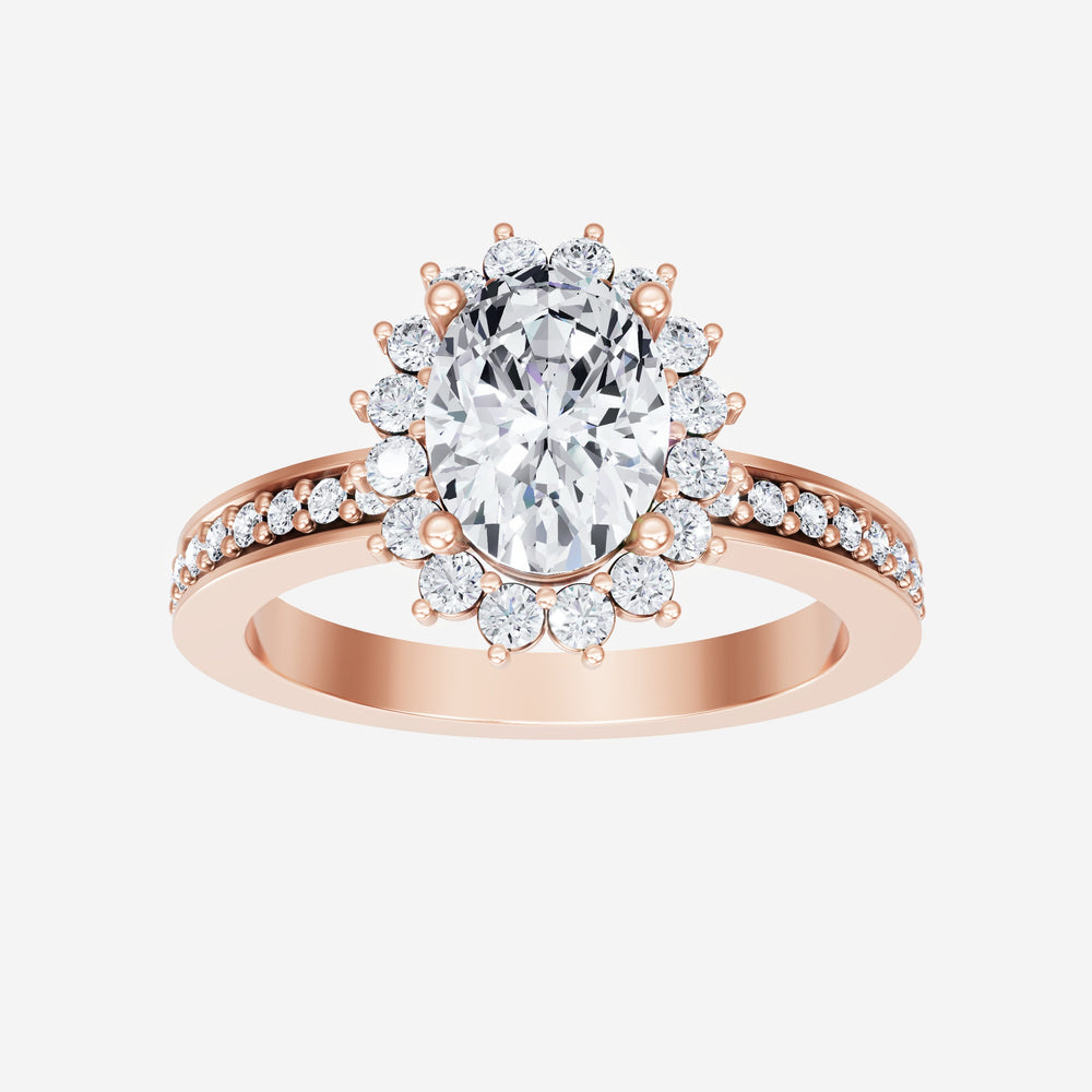 You’ve designed a ring that reflects lasting elegance and grace! Crafted from 14k Rose Gold, this exquisite Oval lab-grown diamond is the centerpiece of this unique design. This Single Pave Shank with a Diana Halo head showcases the brilliance of the Oval diamond, creating a timeless look. With this ring, celebrate every moment of joy, success, and love.
