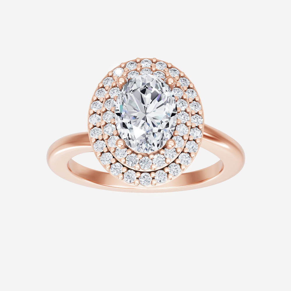 You’ve designed a ring that reflects lasting elegance and grace! Crafted from 14k Rose Gold, this exquisite Oval lab-grown diamond is the centerpiece of this unique design. This Bypass Shank with a Double Halo head showcases the brilliance of the Oval diamond, creating a timeless look. Ideal for those who seek both beauty and meaning, this ring will stand as a testament to cherished memories.