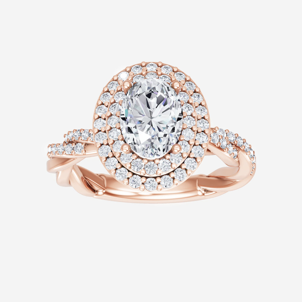 You’ve designed a ring that reflects lasting elegance and grace! Crafted from 14k Rose Gold, this exquisite Oval lab-grown diamond is the centerpiece of this unique design. This Rope Diamond Shank with a Double Halo head showcases the brilliance of the Oval diamond, creating a timeless look. Ideal for those who seek both beauty and meaning, this ring will stand as a testament to cherished memories.
