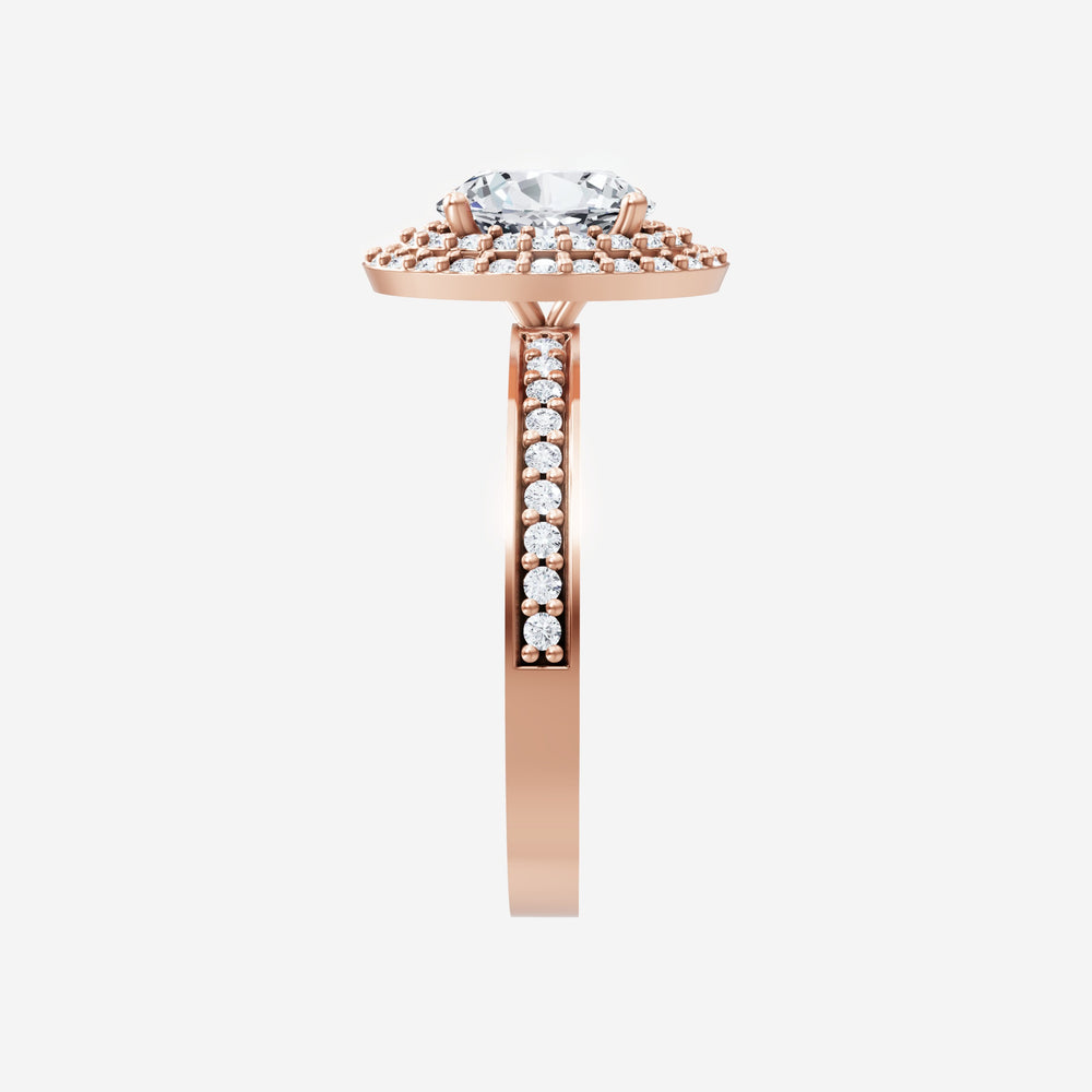 You’ve designed a ring that reflects lasting elegance and grace! Crafted from 14k Rose Gold, this exquisite Oval lab-grown diamond is the centerpiece of this unique design. This Single Pave Shank with a Double Halo head showcases the brilliance of the Oval diamond, creating a timeless look. With this ring, celebrate every moment of joy, success, and love.