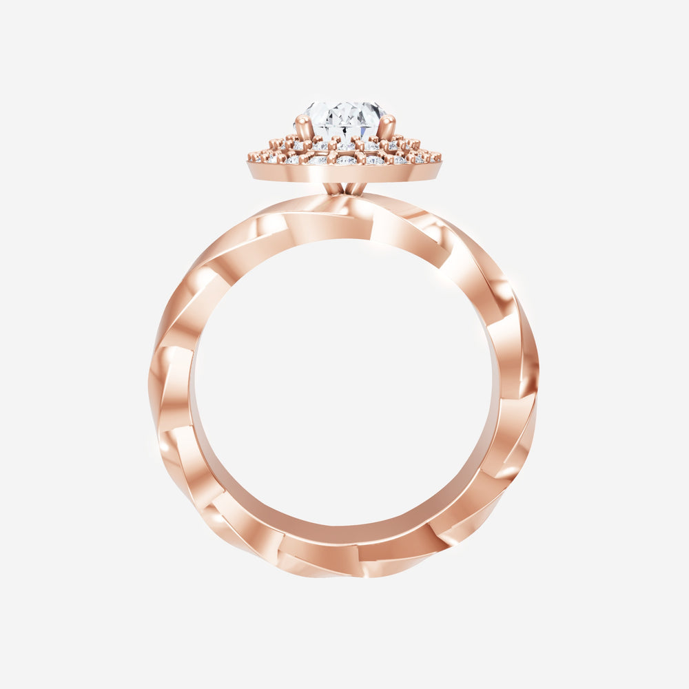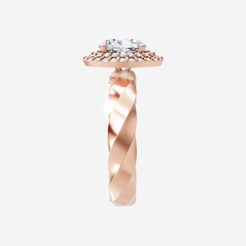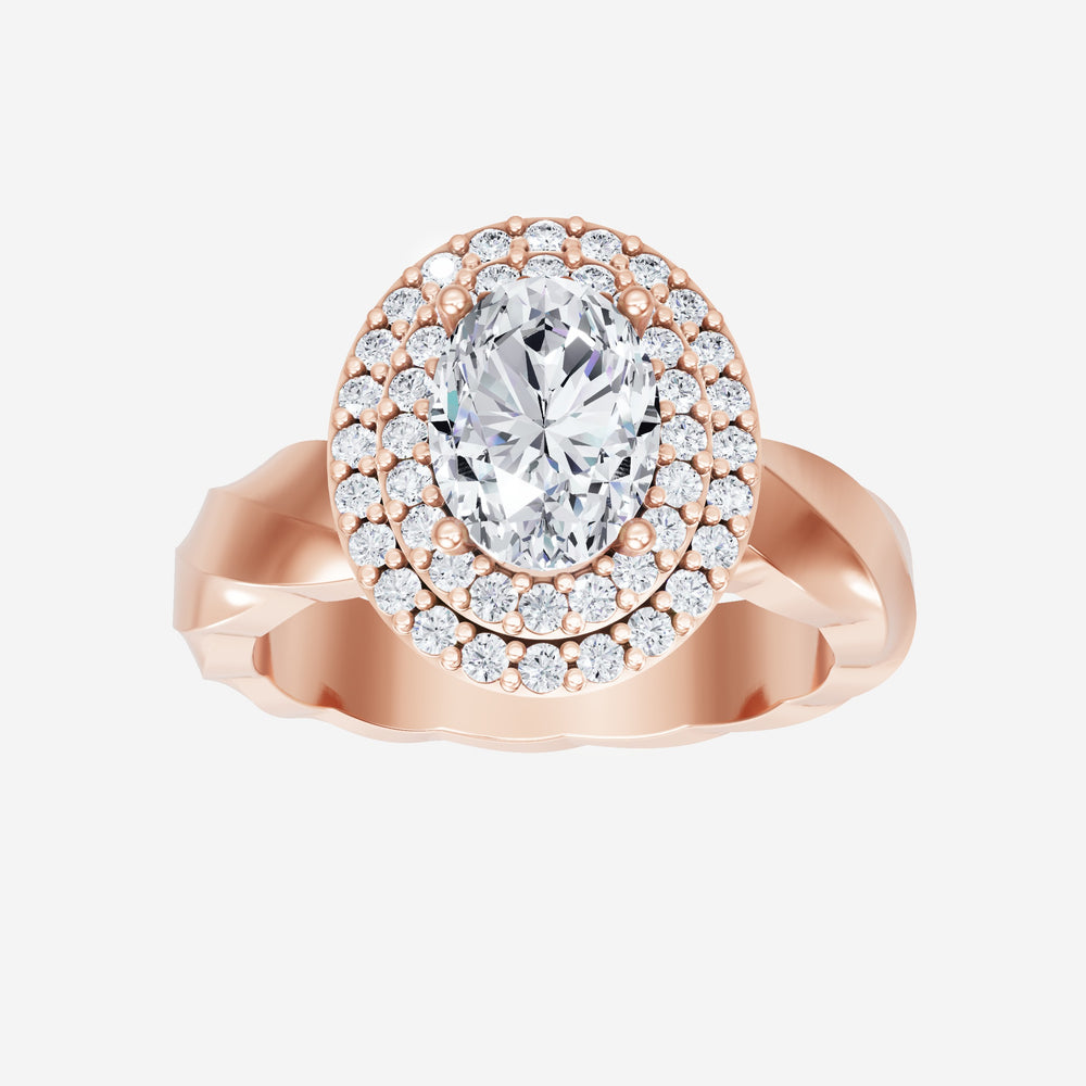 You’ve designed a ring that reflects lasting elegance and grace! Crafted from 14k Rose Gold, this exquisite Oval lab-grown diamond is the centerpiece of this unique design. This Twisted Shank with a Double Halo head showcases the brilliance of the Oval diamond, creating a timeless look. This ring will become a cherished reminder of life's most treasured moments.