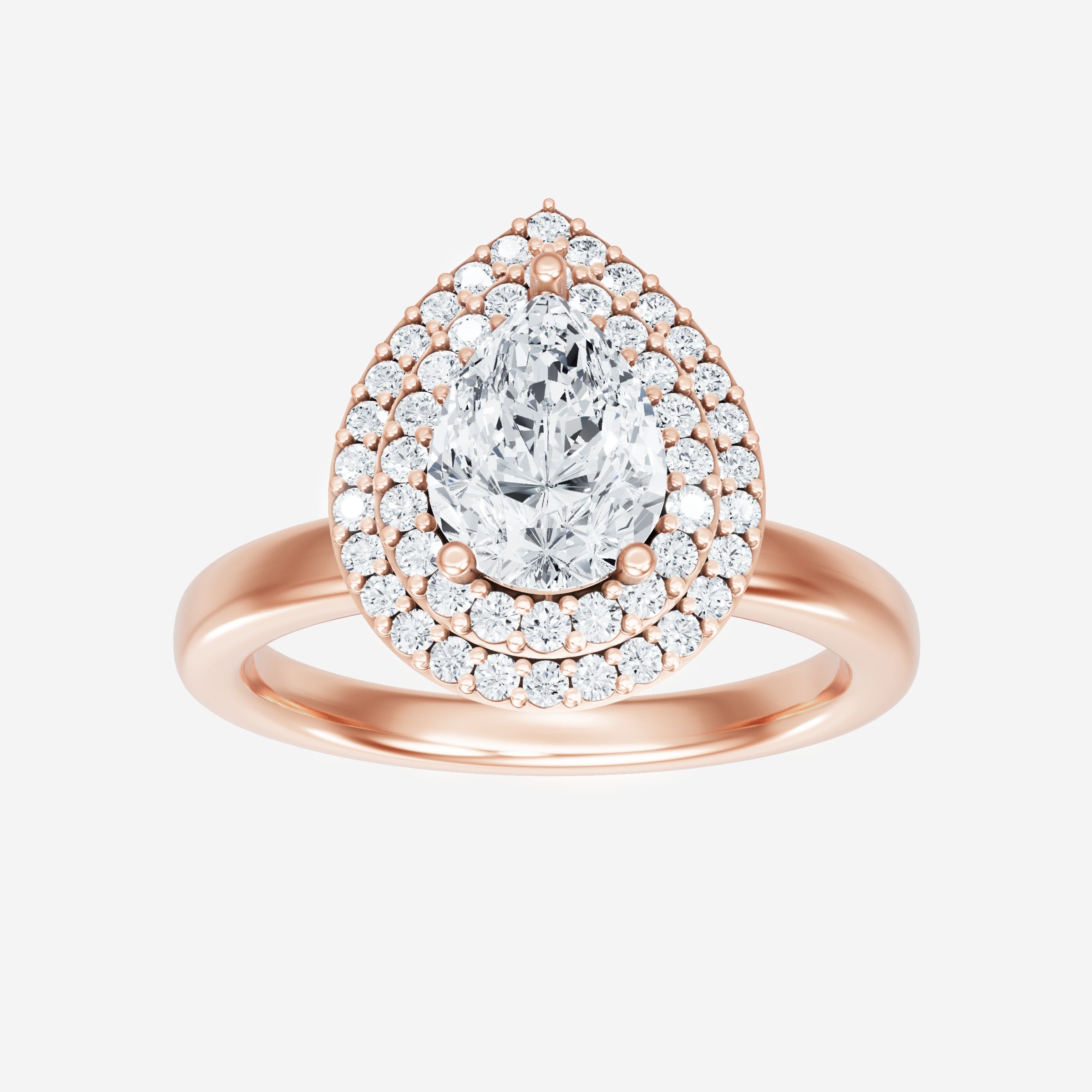 You’ve designed a ring that reflects lasting elegance and grace! Crafted from 14k Rose Gold, this exquisite Pear lab-grown diamond is the centerpiece of this unique design. This Basic Plain Shank with a Double Halo head showcases the brilliance of the Pear diamond, creating a timeless look. This elegant piece is the perfect symbol of love, strength, and timeless beauty.