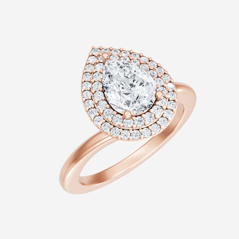 You’ve designed a ring that reflects lasting elegance and grace! Crafted from 14k Rose Gold, this exquisite Pear lab-grown diamond is the centerpiece of this unique design. This Bypass Shank with a Double Halo head showcases the brilliance of the Pear diamond, creating a timeless look. A perfect choice to celebrate love, commitment, and everything in between.