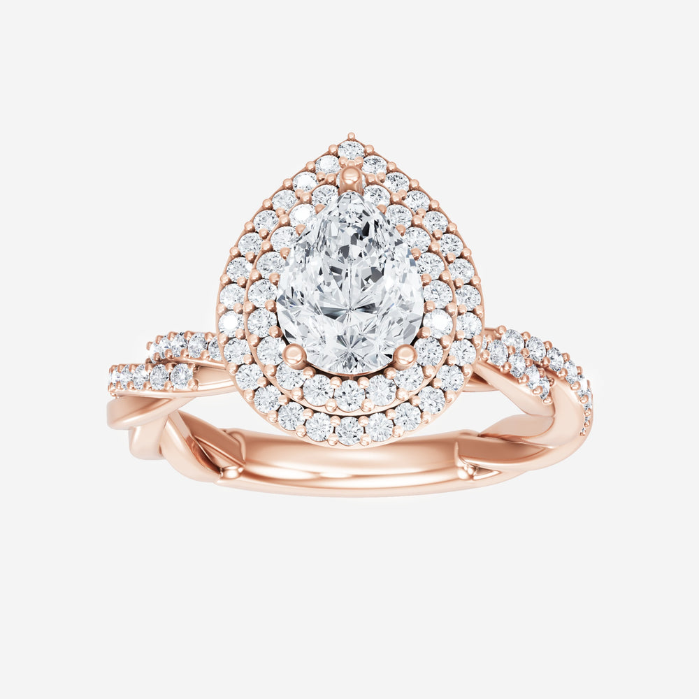You’ve designed a ring that reflects lasting elegance and grace! Crafted from 14k Rose Gold, this exquisite Pear lab-grown diamond is the centerpiece of this unique design. This Rope Diamond Shank with a Double Halo head showcases the brilliance of the Pear diamond, creating a timeless look. With this ring, celebrate every moment of joy, success, and love.