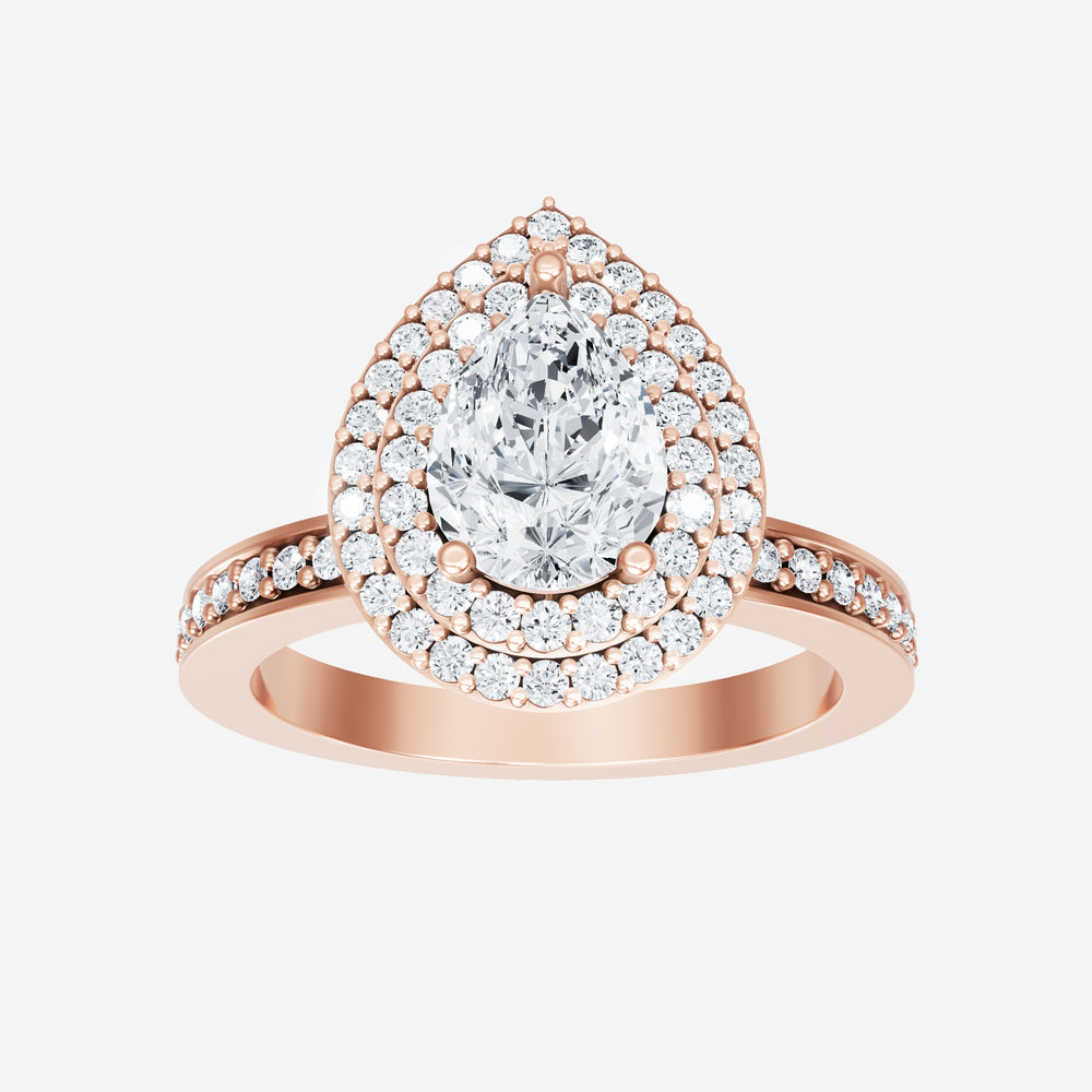 You’ve designed a ring that reflects lasting elegance and grace! Crafted from 14k Rose Gold, this exquisite Pear lab-grown diamond is the centerpiece of this unique design. This Single Pave Shank with a Double Halo head showcases the brilliance of the Pear diamond, creating a timeless look. This stunning ring makes the perfect symbol of everlasting love and devotion.