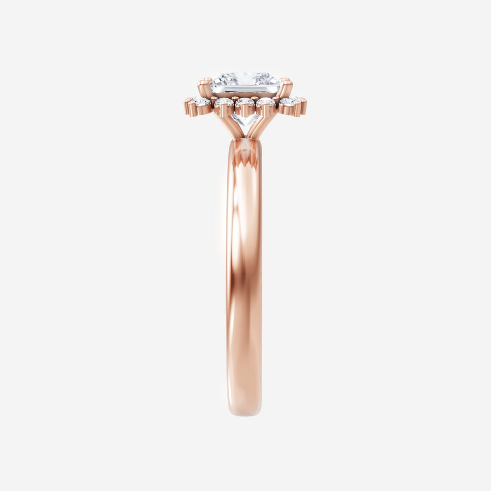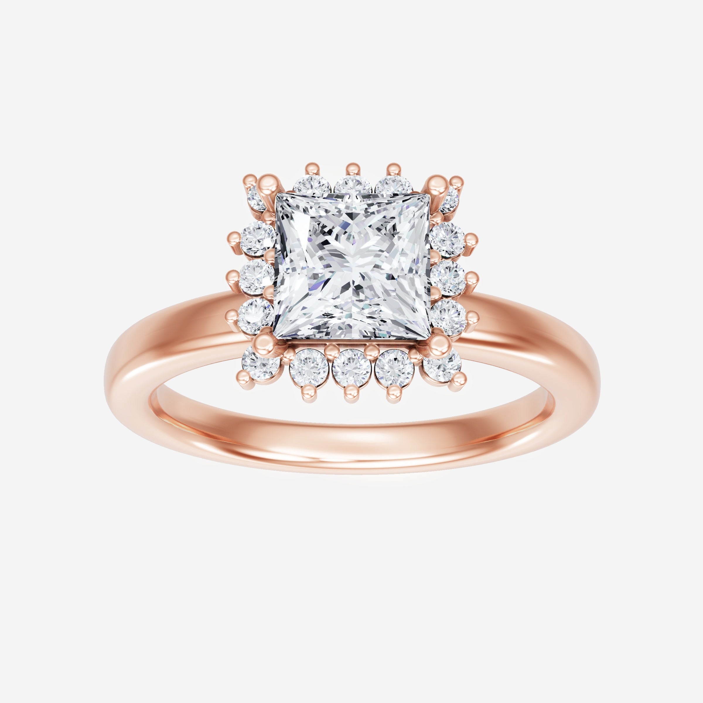 You’ve designed a ring that reflects lasting elegance and grace! Crafted from 14k Rose Gold, this exquisite Princess lab-grown diamond is the centerpiece of this unique design. This Basic Plain Shank with a Diana Halo head showcases the brilliance of the Princess diamond, creating a timeless look. This elegant piece is the perfect symbol of love, strength, and timeless beauty.
