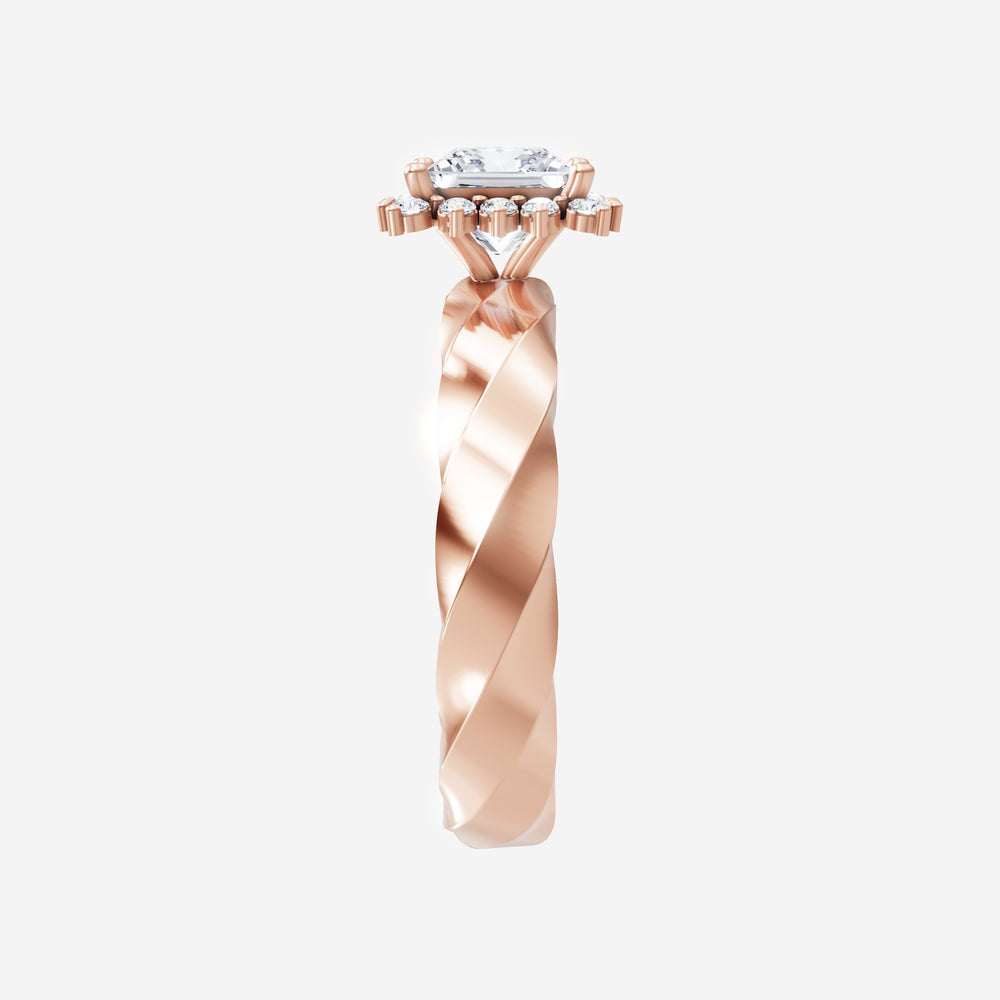 You’ve designed a ring that reflects lasting elegance and grace! Crafted from 14k Rose Gold, this exquisite Princess lab-grown diamond is the centerpiece of this unique design. This Twisted Shank with a Diana Halo head showcases the brilliance of the Princess diamond, creating a timeless look. Ideal for those who seek both beauty and meaning, this ring will stand as a testament to cherished memories.