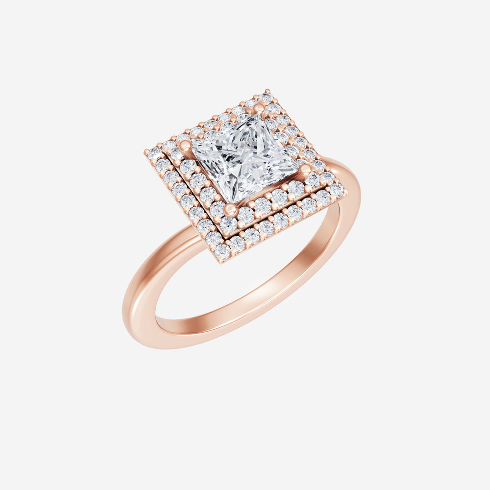 You’ve designed a ring that reflects lasting elegance and grace! Crafted from 14k Rose Gold, this exquisite Princess lab-grown diamond is the centerpiece of this unique design. This Bypass Shank with a Double Halo head showcases the brilliance of the Princess diamond, creating a timeless look. This elegant piece is the perfect symbol of love, strength, and timeless beauty.