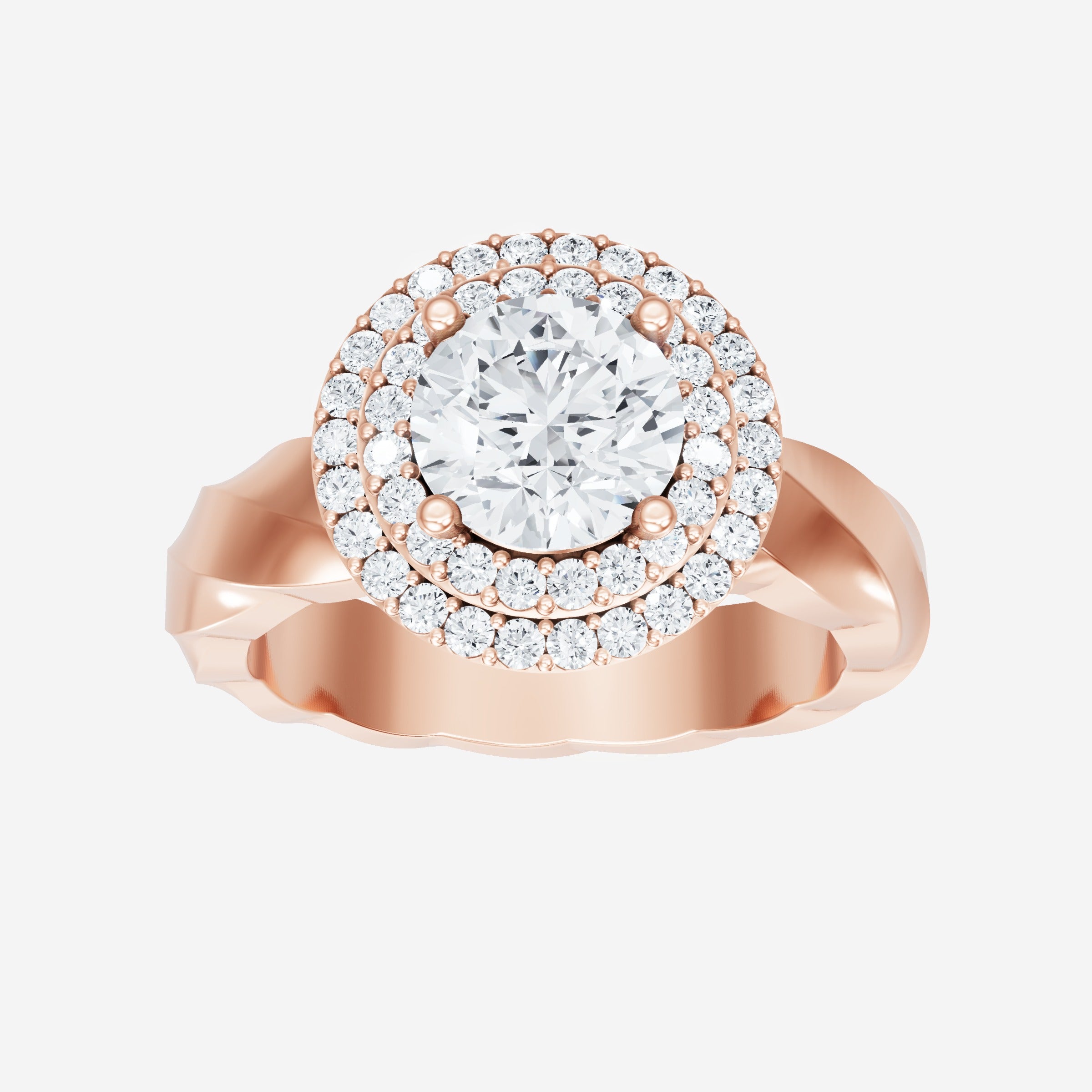 You’ve designed a ring that reflects lasting elegance and grace! Crafted from 14k Rose Gold, this exquisite Round lab-grown diamond is the centerpiece of this unique design. This Twisted Shank with a Double Halo head showcases the brilliance of the Round diamond, creating a timeless look. Ideal for those who seek both beauty and meaning, this ring will stand as a testament to cherished memories.