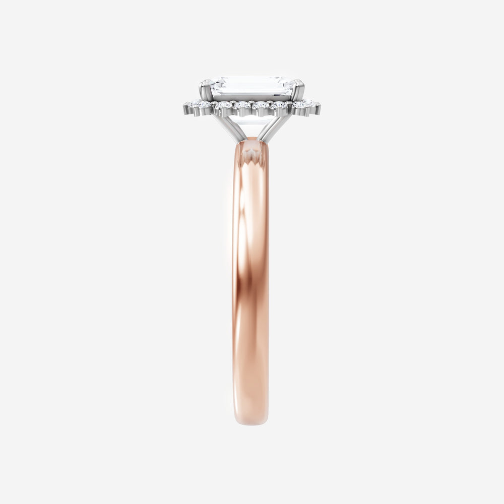 You’ve designed a ring that reflects lasting elegance and grace! Crafted from 14k Rose White Dual Tone, this exquisite Emerald lab-grown diamond is the centerpiece of this unique design. This Basic Plain Shank with a Diana Halo head showcases the brilliance of the Emerald diamond, creating a timeless look. A perfect choice to celebrate love, commitment, and everything in between.