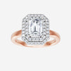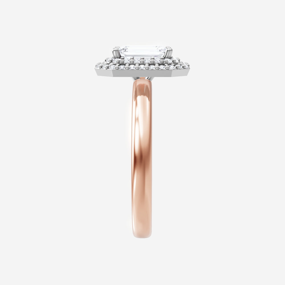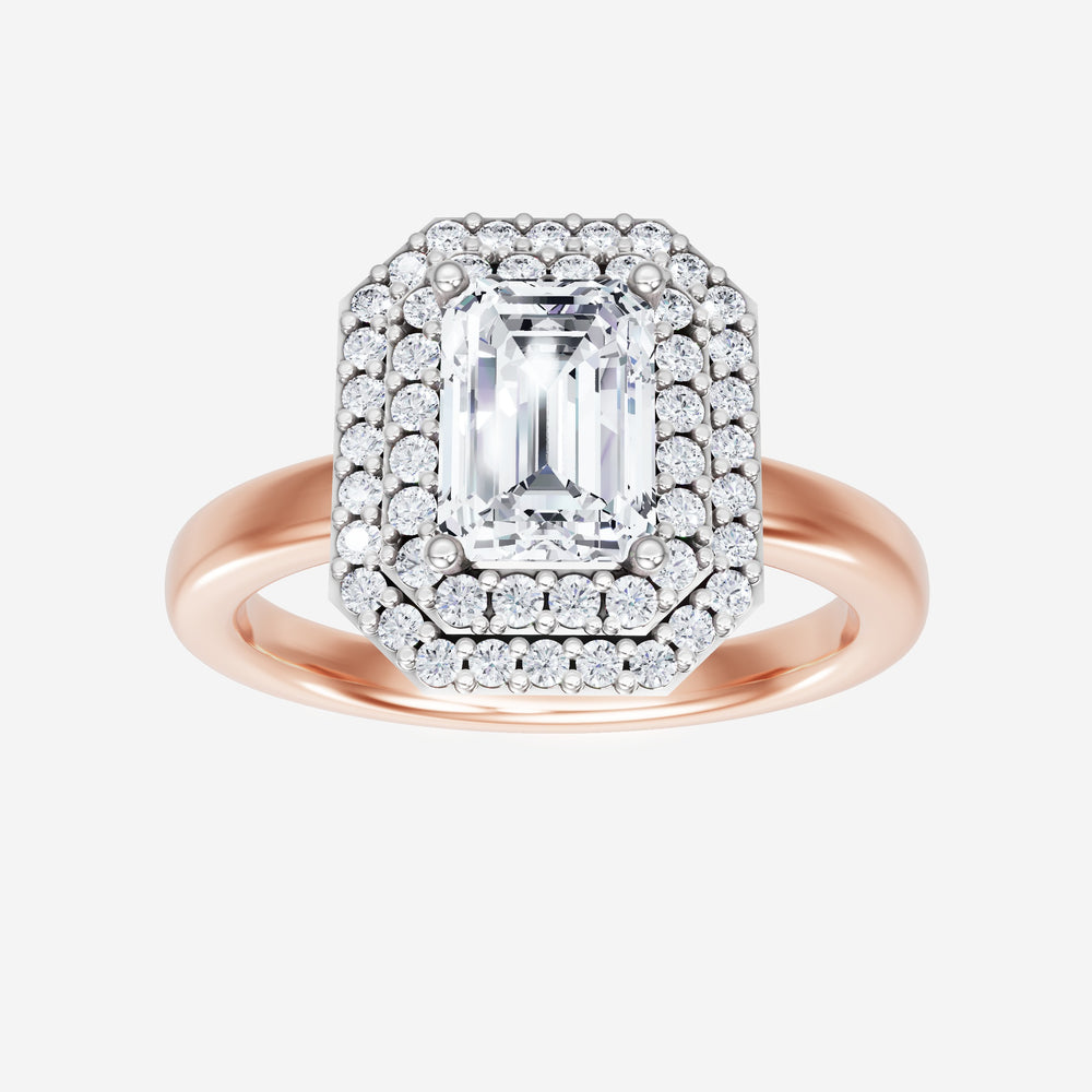 You’ve designed a ring that reflects lasting elegance and grace! Crafted from 14k Rose White Dual Tone, this exquisite Emerald lab-grown diamond is the centerpiece of this unique design. This Basic Plain Shank with a Double Halo head showcases the brilliance of the Emerald diamond, creating a timeless look. This stunning ring makes the perfect symbol of everlasting love and devotion.