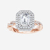 You’ve designed a ring that reflects lasting elegance and grace! Crafted from 14k Rose White Dual Tone, this exquisite Emerald lab-grown diamond is the centerpiece of this unique design. This Rope Diamond Shank with a Double Halo head showcases the brilliance of the Emerald diamond, creating a timeless look. This stunning ring makes the perfect symbol of everlasting love and devotion.