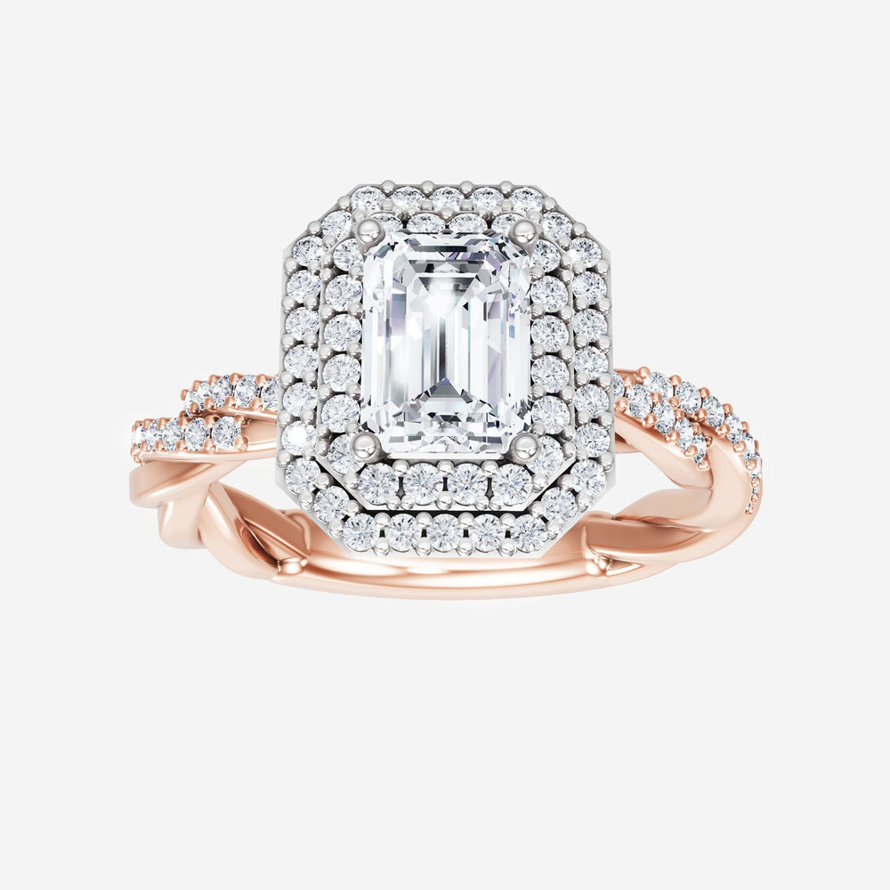 You’ve designed a ring that reflects lasting elegance and grace! Crafted from 14k Rose White Dual Tone, this exquisite Emerald lab-grown diamond is the centerpiece of this unique design. This Rope Diamond Shank with a Double Halo head showcases the brilliance of the Emerald diamond, creating a timeless look. Whether as a gift or a personal treasure, this ring will forever symbolize the most meaningful moments in life.