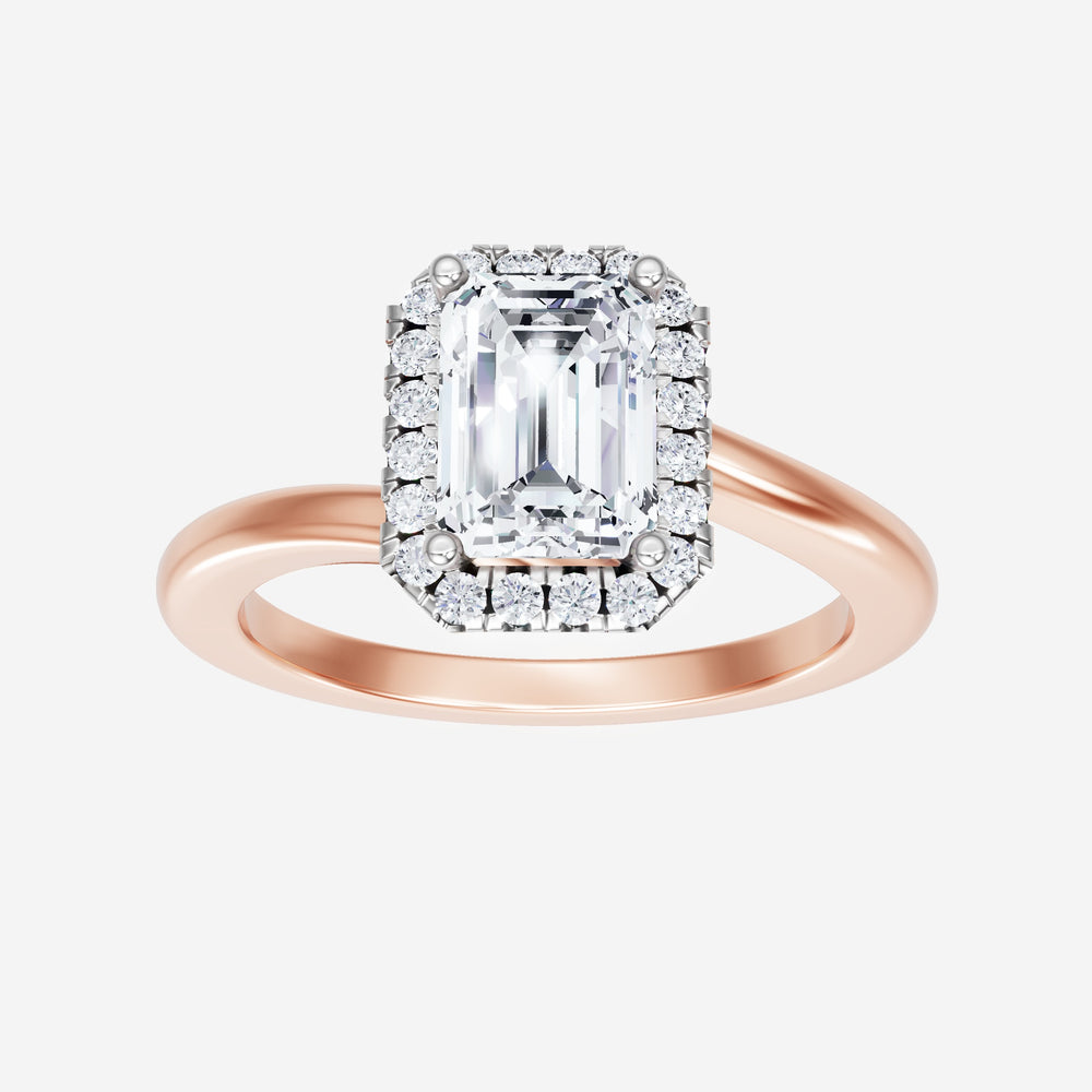 You’ve designed a ring that reflects lasting elegance and grace! Crafted from 14k Rose White Dual Tone, this exquisite Emerald lab-grown diamond is the centerpiece of this unique design. This Bypass Shank with a Micro Halo head showcases the brilliance of the Emerald diamond, creating a timeless look. Whether as a gift or a personal treasure, this ring will forever symbolize the most meaningful moments in life.