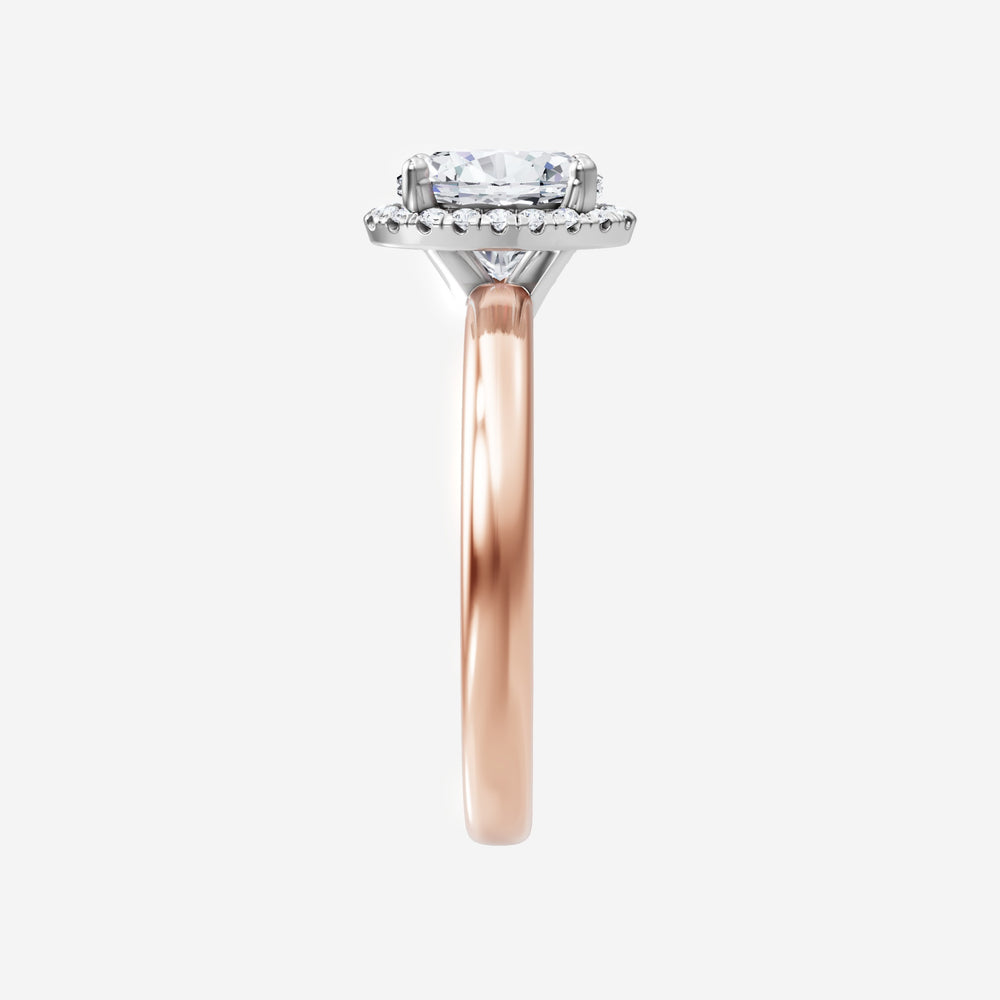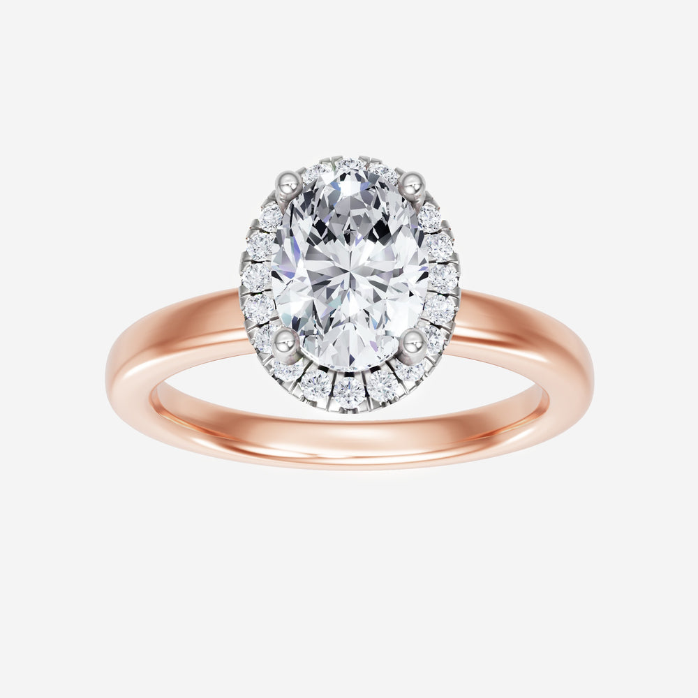 You’ve designed a ring that reflects lasting elegance and grace! Crafted from 14k Rose White Dual Tone, this exquisite Oval lab-grown diamond is the centerpiece of this unique design. This Basic Plain Shank with a Micro Halo head showcases the brilliance of the Oval diamond, creating a timeless look. Ideal for those who seek both beauty and meaning, this ring will stand as a testament to cherished memories.