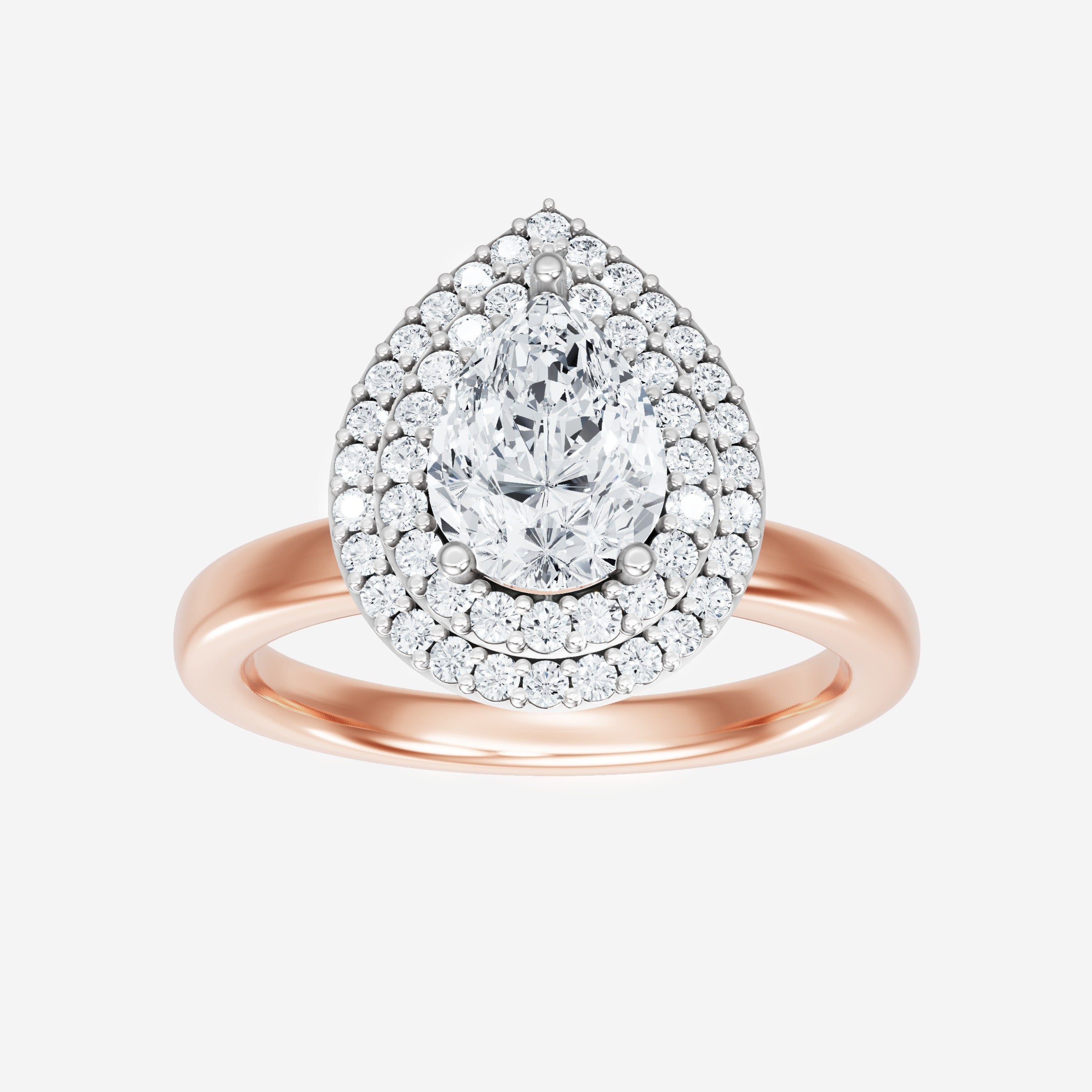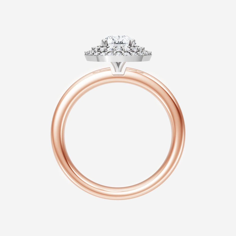 You’ve designed a ring that reflects lasting elegance and grace! Crafted from 14k Rose White Dual Tone, this exquisite Pear lab-grown diamond is the centerpiece of this unique design. This Basic Plain Shank with a Double Halo head showcases the brilliance of the Pear diamond, creating a timeless look. Ideal for those who seek both beauty and meaning, this ring will stand as a testament to cherished memories.