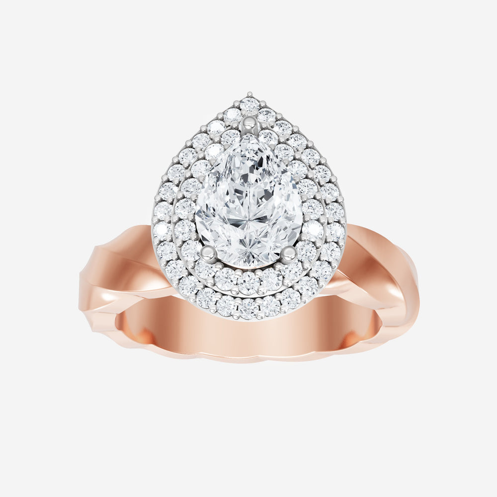 You’ve designed a ring that reflects lasting elegance and grace! Crafted from 14k Rose White Dual Tone, this exquisite Pear lab-grown diamond is the centerpiece of this unique design. This Twisted Shank with a Double Halo head showcases the brilliance of the Pear diamond, creating a timeless look. A perfect choice to celebrate love, commitment, and everything in between.