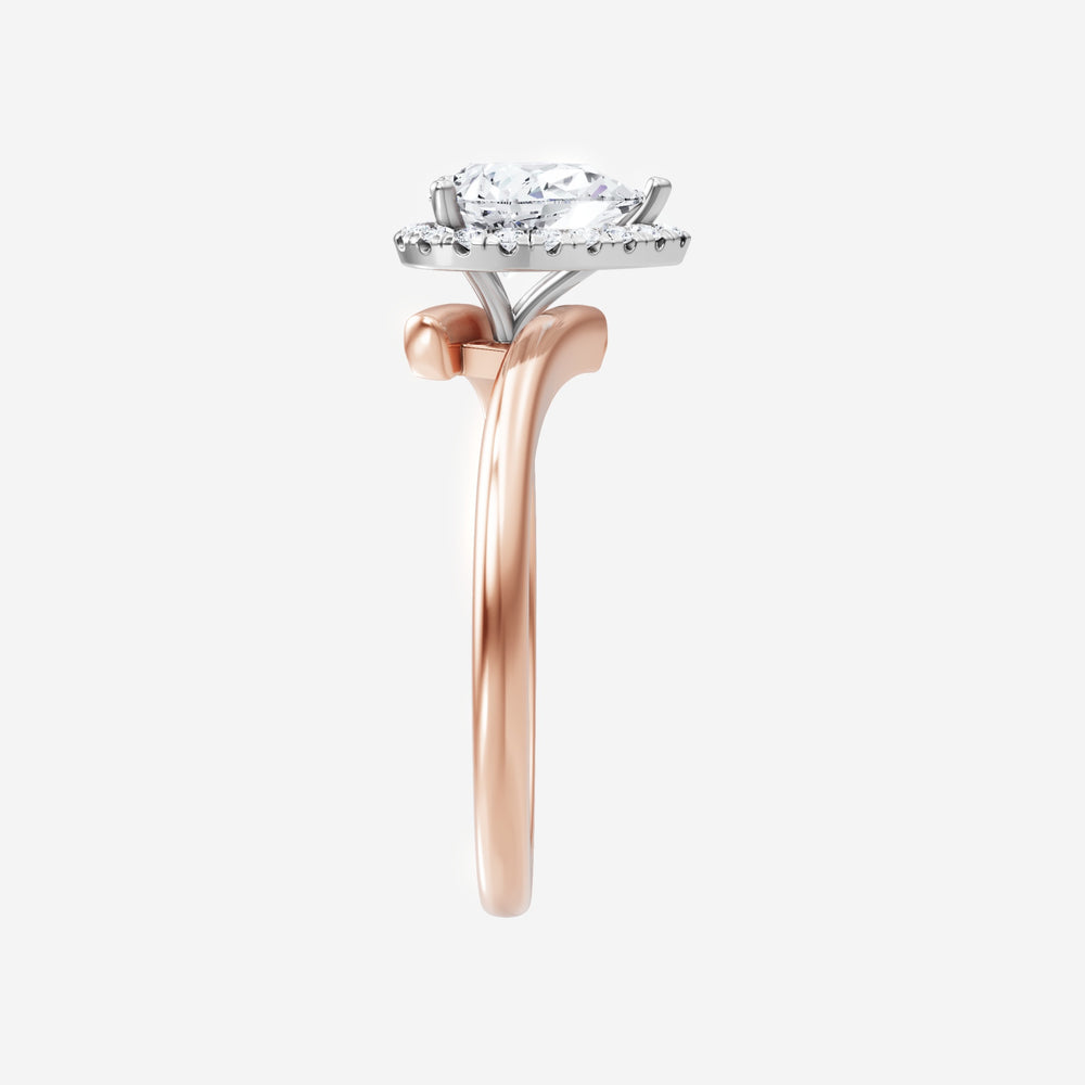 You’ve designed a ring that reflects lasting elegance and grace! Crafted from 14k Rose White Dual Tone, this exquisite Pear lab-grown diamond is the centerpiece of this unique design. This Bypass Shank with a Micro Halo head showcases the brilliance of the Pear diamond, creating a timeless look. This stunning ring makes the perfect symbol of everlasting love and devotion.