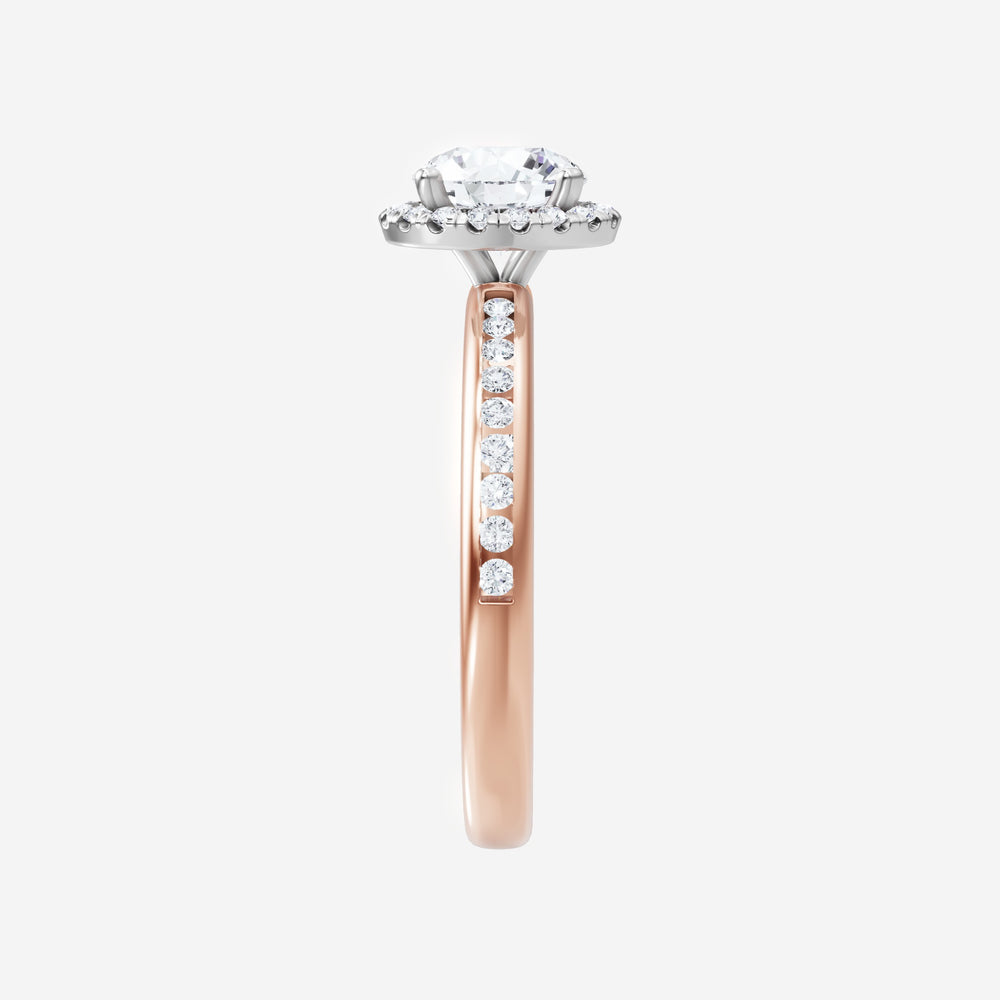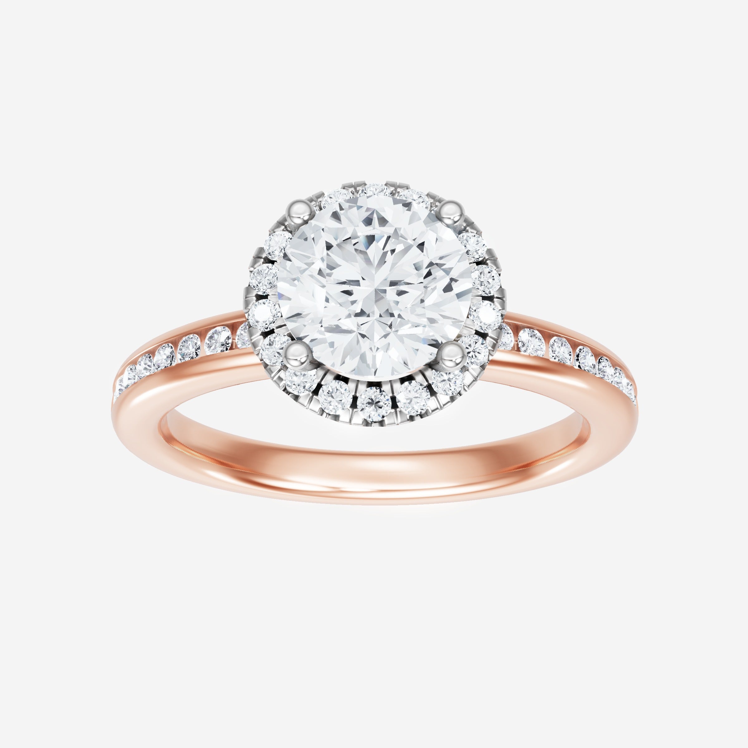 You’ve designed a ring that reflects lasting elegance and grace! Crafted from 14k Rose White Dual Tone, this exquisite Round lab-grown diamond is the centerpiece of this unique design. This Channel Set Shank with a Micro Halo head showcases the brilliance of the Round diamond, creating a timeless look. Ideal for those who seek both beauty and meaning, this ring will stand as a testament to cherished memories.